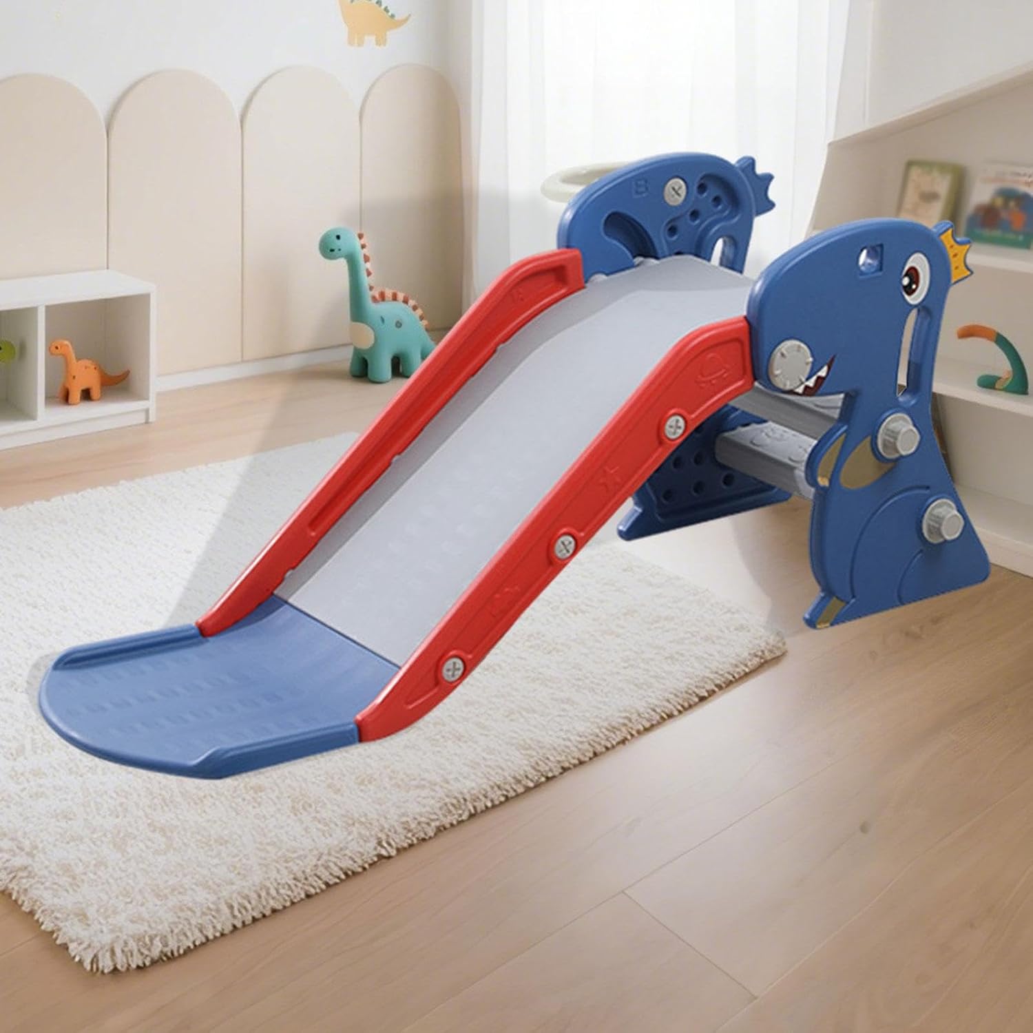 【Età consigliata】: Adatto a bambini di età compresa tra 1 e 8 anni, garantendo la sicurezza di arrampicarsi e scivolare sotto la supervisione di un adulto 【Stabile e antiscivolo】: struttura triangolare, stabile e non tremolante, facile da installare, design pieghevole, comodo da riporre, non occupa spazio. 【Design multifunzione】: graziosi scivoli a forma di dinosauro con gradini di arrampicata, canestro da basket e scivolo liscio da 105 cm, esercitano la capacità di coordinazione occhio-mano e le capacità motorie durante il gioco. 【Esperienza di scorrimento fluida】: con scorrimento lungo 105 cm, 35 gradini più ampi, robusta costruzione in PP, garantisce stabilità e affidabilità 【Ampia applicazione】: questo scivolo giocattolo per bambini misura 48,03 pollici x 20,87 pollici x 20,47 pollici, le dimensioni adeguate sono ideali per interni, casa, camera da letto, , soggiorno, scuola , asilo nido e asilo nido.