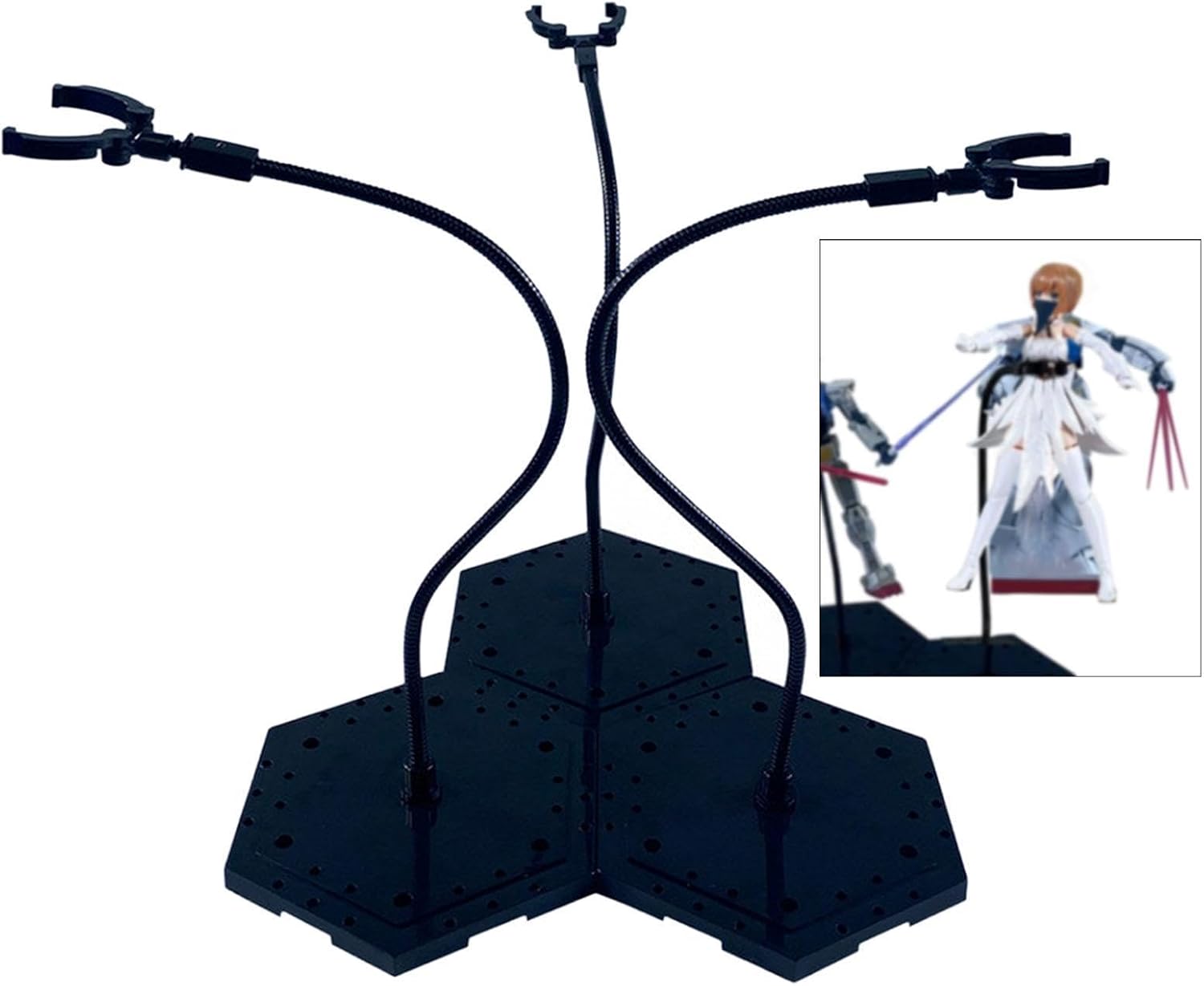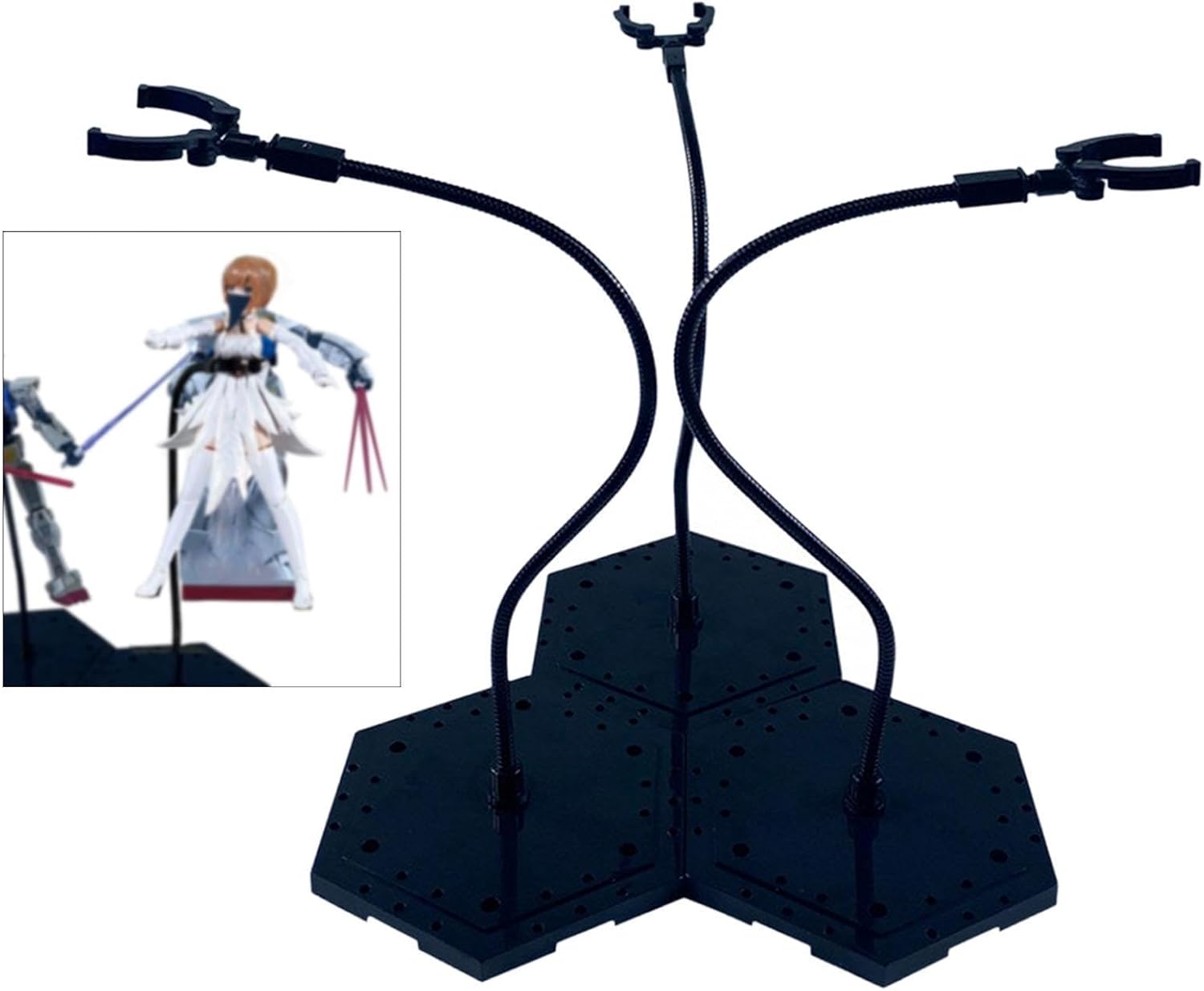 【Supporto stabile】: il design della base allargata del supporto per modelli di bambole garantisce stabilità e non trema. Il braccio di supporto fissa saldamente il personaggio per una presentazione visiva ideale. 【Materiale robusto】: realizzato in alta resistenza, la base del supporto per l'esposizione delle action figure di montaggio è robusta e resistente e non verrà danneggiata dopo un uso prolungato 【Montaggio rapido】: non sono necessari attrezzi, basta collegare il morsetto, il braccio di supporto e la base per un facile montaggio e un utilizzo immediato 【Pose facili da regolare】: il braccio di supporto pieghevole e il morsetto mobile del supporto per bambole consentono di assumere facilmente pose dinamiche come volare, combattere o stare in piedi 【Multifunzione】: Supporto per action figure ideale per esporre personaggi anime, action figure, modelli stop tutti i tipi di oggetti da collezione per soddisfare le diverse esigenze degli appassionati