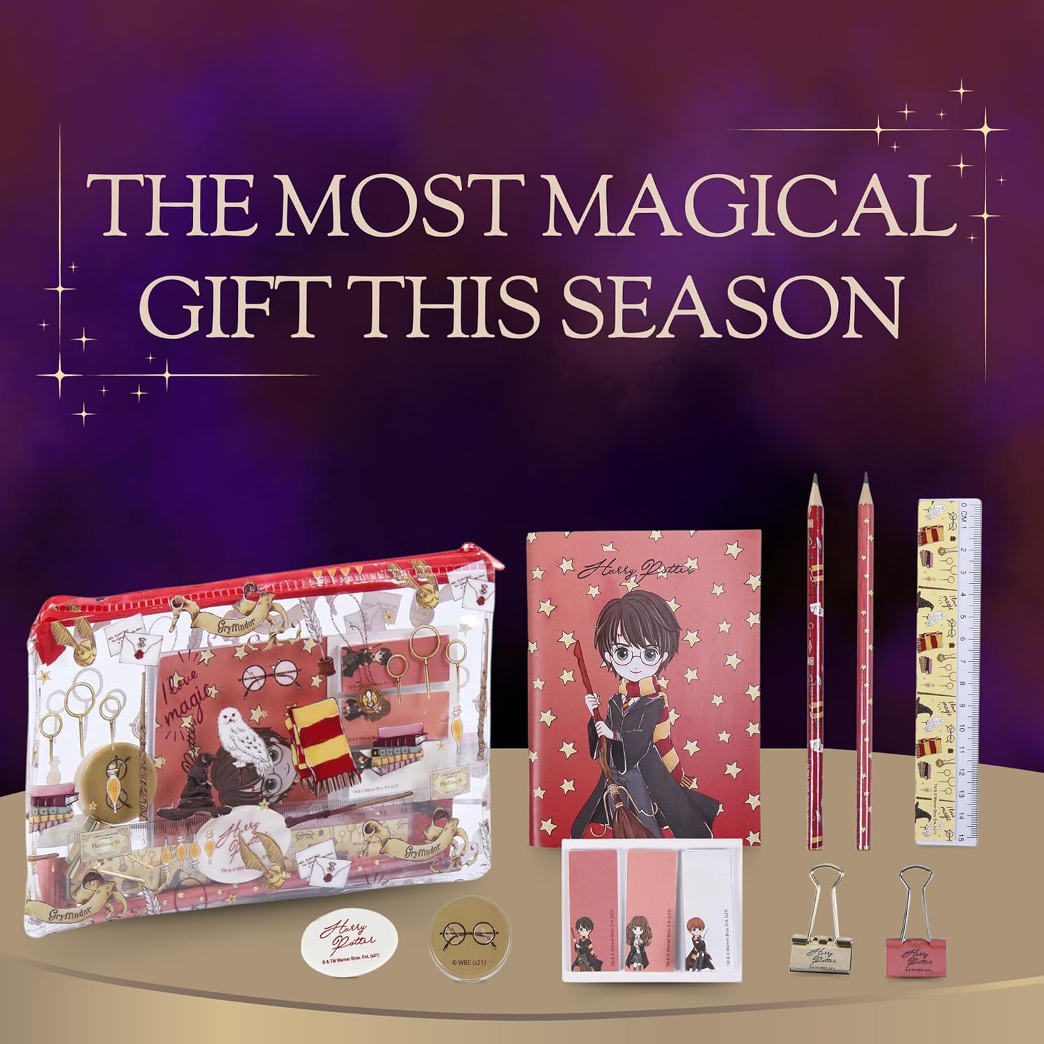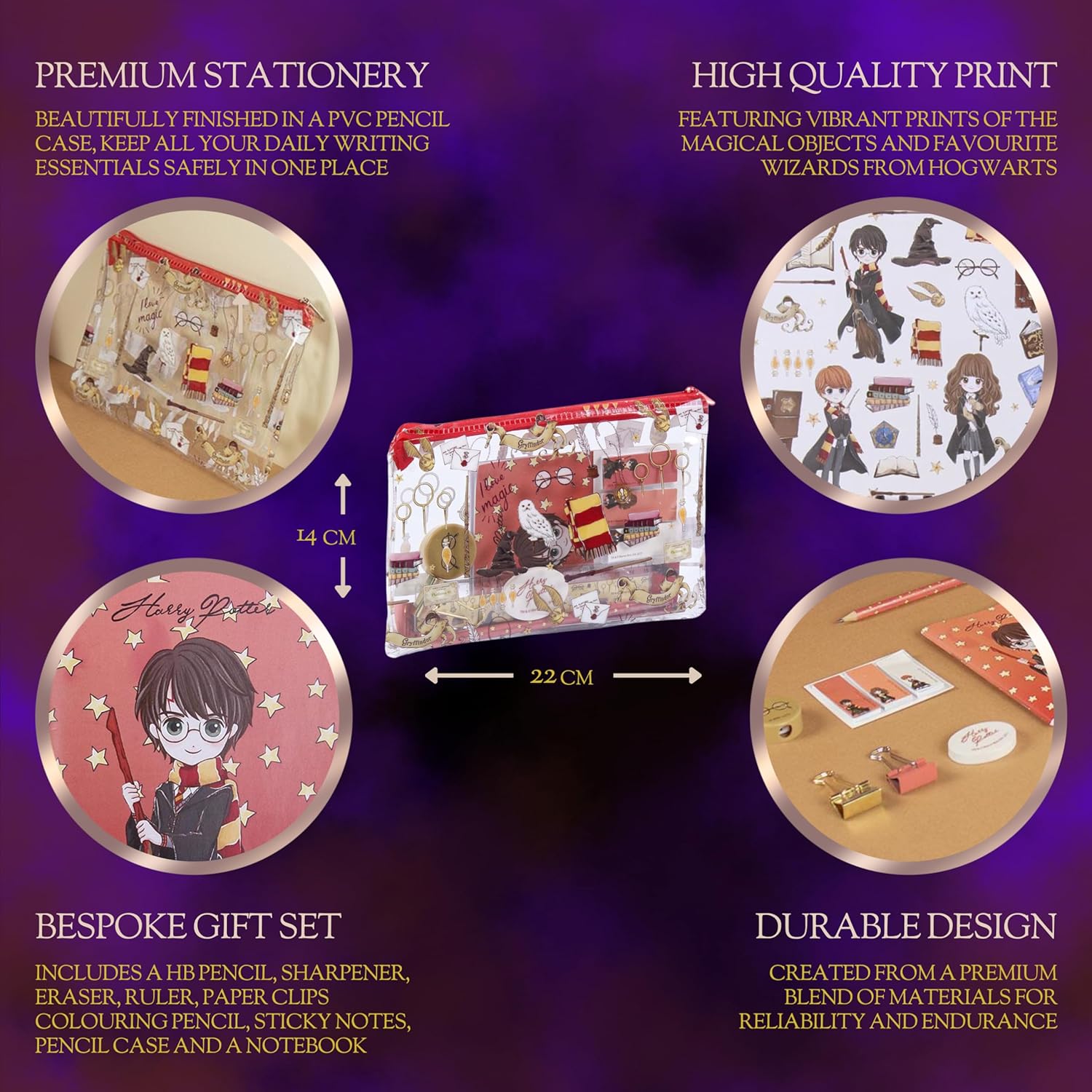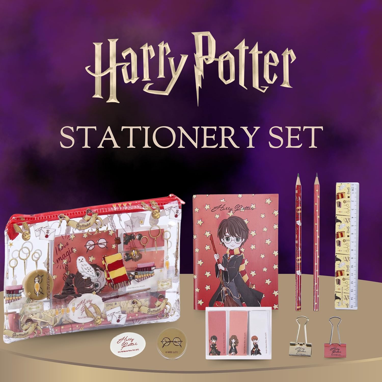 EDIZIONE LIMITATA - Hanno una stampa audace, brillante e classica dei famosi studenti di Hogwarts. Un set ideale per il fan del film di Harry Potter numero #1 nella tua vita, questo set è perfetto per l'università, il lavoro, l'università, i viaggi e molto altro. Introducili nel magico mondo di Harry Potter, fagli scoprire i magici segreti nascosti nell'armadio sotto le scale con questo gioco di Harry Potter ASTUCCIO ESCLUSIVA - Il set scolastico kawaii di Harry Potter offre una qualità eccezionale, è stato progettato con la perfetta combinazione di comfort e stile. Si distingueranno in questa stagione con il kit di scuola chibi di Harry, Ron e Hermione. Creato con materiali durevoli e resistenti all'usura, adoreranno questo astuccio per Hogwarts, è destinato al primo posto nei regali di Harry Potter più ricercati di questa stagione TACCUINO A6 - Il nostro taccuino di Harry Potter ti farà sentire un autentico mago di Hogwarts in quanto è perfetto per scrivere i tuoi incantesimi e le note essenziali, caratterizzato dall'illustrazione di Harry Potter crea un tocco divertente approvato dai maghi con questo magico diario di Harry Potter DESIGN HOGWARTS - Preparalo per questa stagione e tienilo organizzato con questo fantastico set di Harry Potter. Include un astuccio, due matite, un righello, una gomma, due graffette, foglietti adesivi e un blocco note, il tuo fan di Harry Potter adorerà sentire la protezione della magia che lo circonda con questo fantastico set scolastico di Harry Potter REGALO DI HARRY POTTER - Emoziona ogni fan di Harry Potter, stai cercando un regalo speciale per tua figlia, figlio, nipote, amico o amica? Sorprendili questo set di Harry Potter è geniale e ammaliante, la migliore idea regalo per ragazze, ragazzi, donne, uomini e adolescenti, adoreranno questo prezioso regalo per il loro compleanno o Natale, sarà il set scolastico preferito di tutti i fan del mondo magico Harry Potter