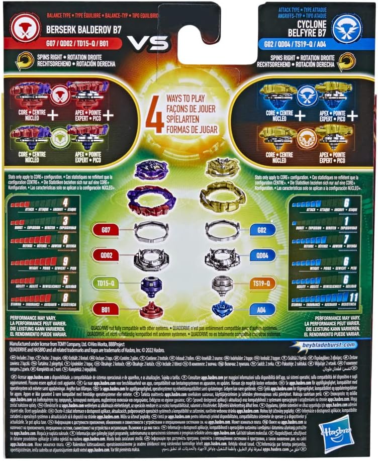 HASBRO BEYBLADE BURST QUADDRIVE CYCLONE BELFYRE F7 UND BERSERK BALDEROV B7, GESCHICKLICHKEITSSPIEL F3965ES0