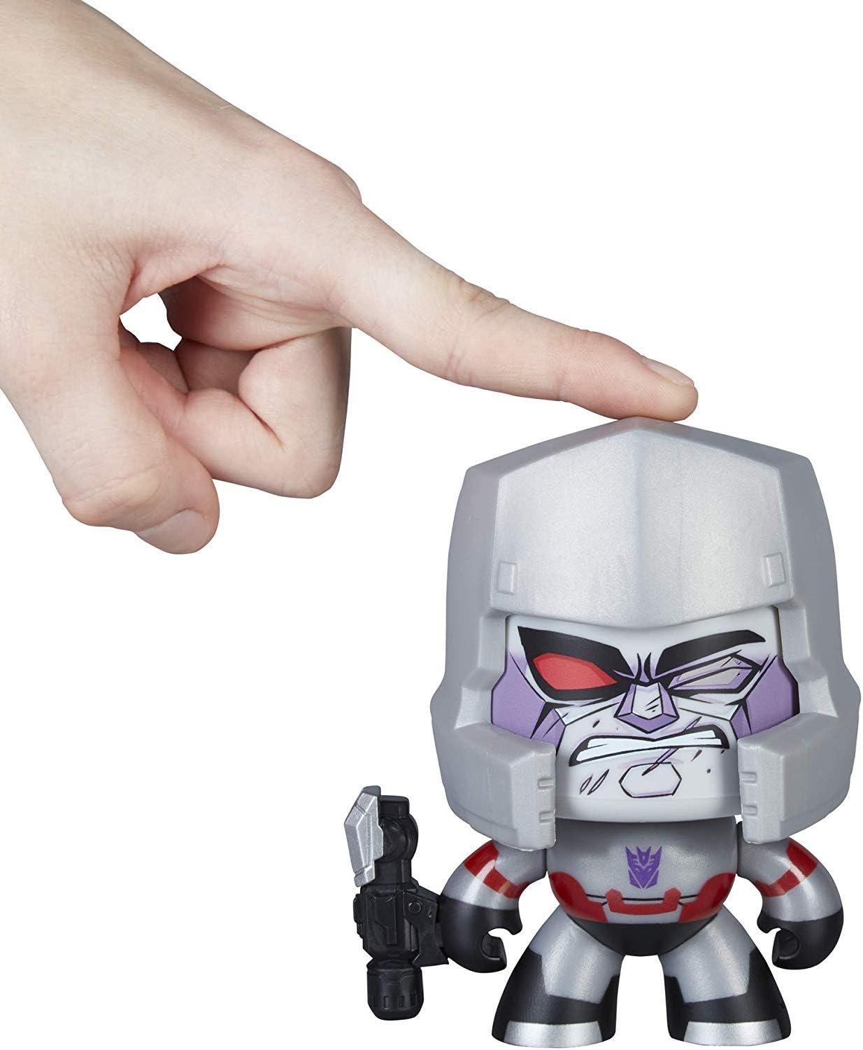 3 differenti espressioni facciali Premendo la testa, cambierà espressione facciale Design classico di Megatron Dai un'occhiata agli altri personaggi Mighty Muggs (venduti separatamente) Personaggio alto 9.5 cm
