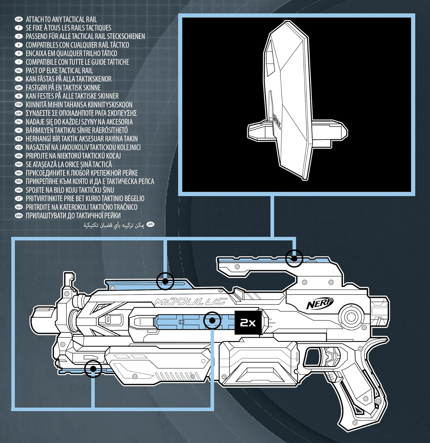 Un calcio per impugnare con più sicurezza Il blaster Un scudo per proteggerti il volto Compatibile con Nerf N-Strike Modulus ECS-10