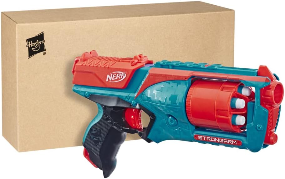 CILINDRO GIREVOLE A 6 DARDI: il blaster Nerf Elite Strongarm Orange possiede una canna rotante che si apre per un facile caricamento dei sei dardi Nerf Elite. Potete scegliere un bersaglio e decidere di lanciare un dardo alla volta oppure scaricare sei dardi in rapida successione RICARICA RAPIDA: il blaster a dardi è dotato di un tamburo che si apre lateralmente (flip-open), rendendo il caricamento semplice e veloce (senza necessità di batterie). In questo modo sarai sempre pronto a colpire i tuoi avversari durante la missione AZIONE SLAM-FIRE: grazie alla funzione Slam-Fire puoi scatenare una raffica di colpi e sparare rapidamente tutti e 6 i dardi inclusi. Tieni premuto il grilletto per mantenere la pressione sull'obiettivo, rendendo ogni sfida più intensa, dinamica e divertente LANCIA FINO A 27 METRI DI DISTANZA: questo blaster assicura colpi precisi con una lunga gittata che raggiunge i 27 metri di distanza. Ideale per portare il divertimento a un livello superiore, ti permette di sorprendere i tuoi avversari anche da lontano ATTENZIONE: Non mirare agli occhi o al viso. Si consiglia ai giocatori di indossare occhiali protettivi (non inclusi) all’interno del raggio d’azione del blaster. Utilizzare solo dardi ufficiali Nerf. Dardi diversi potrebbero non soddisfare i requisiti di sicurezza