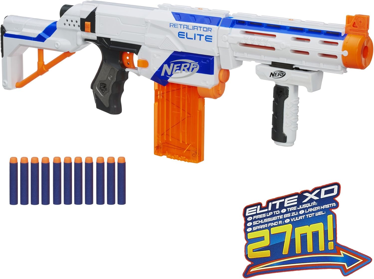 Caricatore removibile, tamburo e impugnatura a scomparsa 4 in 1 Con caricatore da 12 dardi di tipo Elite Spara a oltre 20 m di distanza