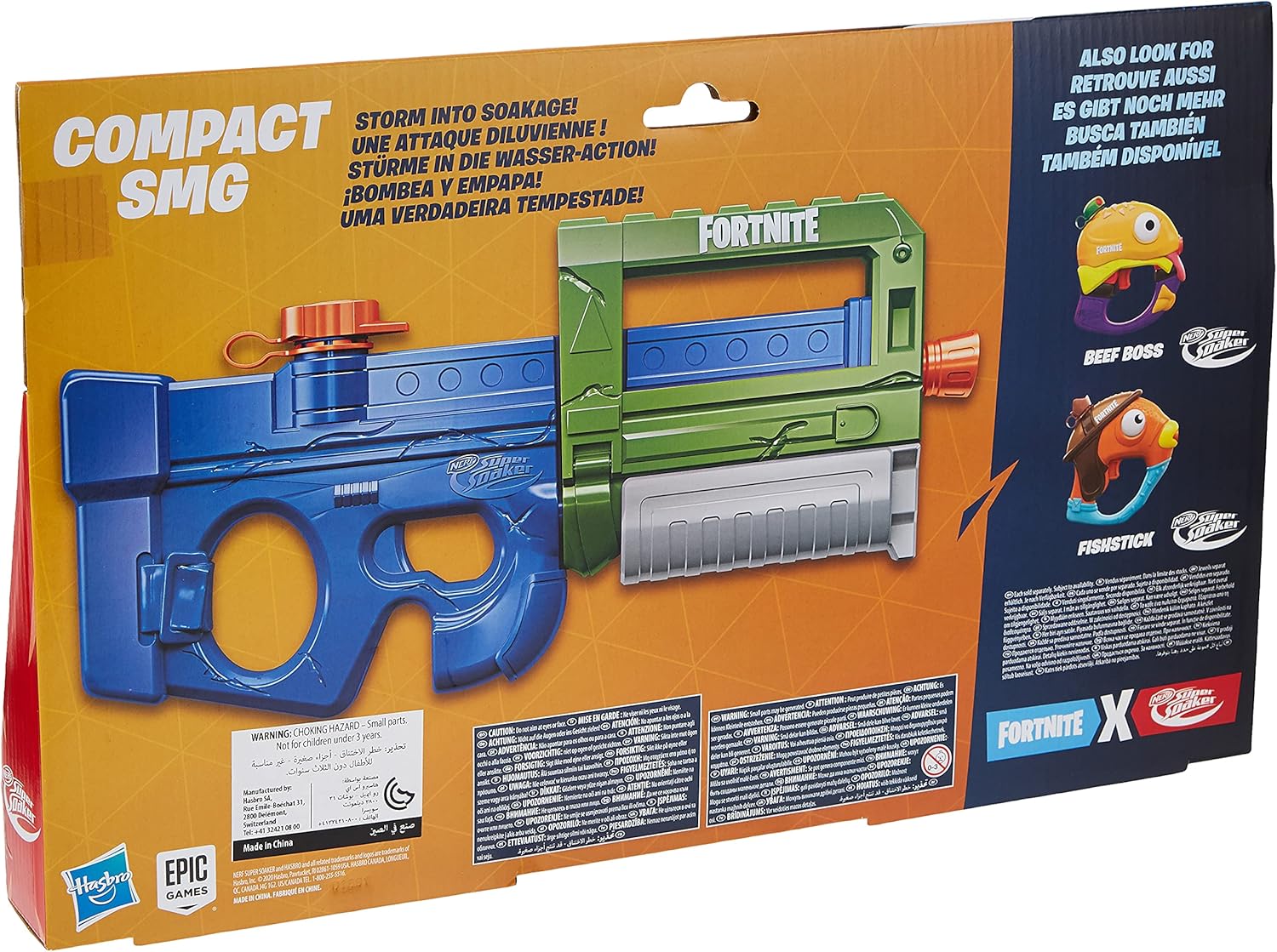 BLASTER AD ACQUA REPLICA DEL BLASTER FORTNITE: Il blaster ad acqua Fortnite Compact SMG è ispirato al blaster usato nel videogioco Fortnite e riproduce l’aspetto e i colori di quello del famoso videogioco DIMENSIONI COMPATTE E AZIONAMENTO A POMPA: Sommergi i tuoi bersagli grazie a questo blaster con dimensioni compatte, perfetto inzuppare gli avversari con attacchi furtivi e azioni rapide! Aziona la pompa per spruzzare un getto d’acqua RIEMPIMENTO E SPRUZZO FACILI: Apri il tappo, riempi il serbatoio, richiudi il tappo e aziona avanti e indietro l’impugnatura per inzuppare i tuoi avversari Adatto a trascorrere momenti divertenti in compagnia