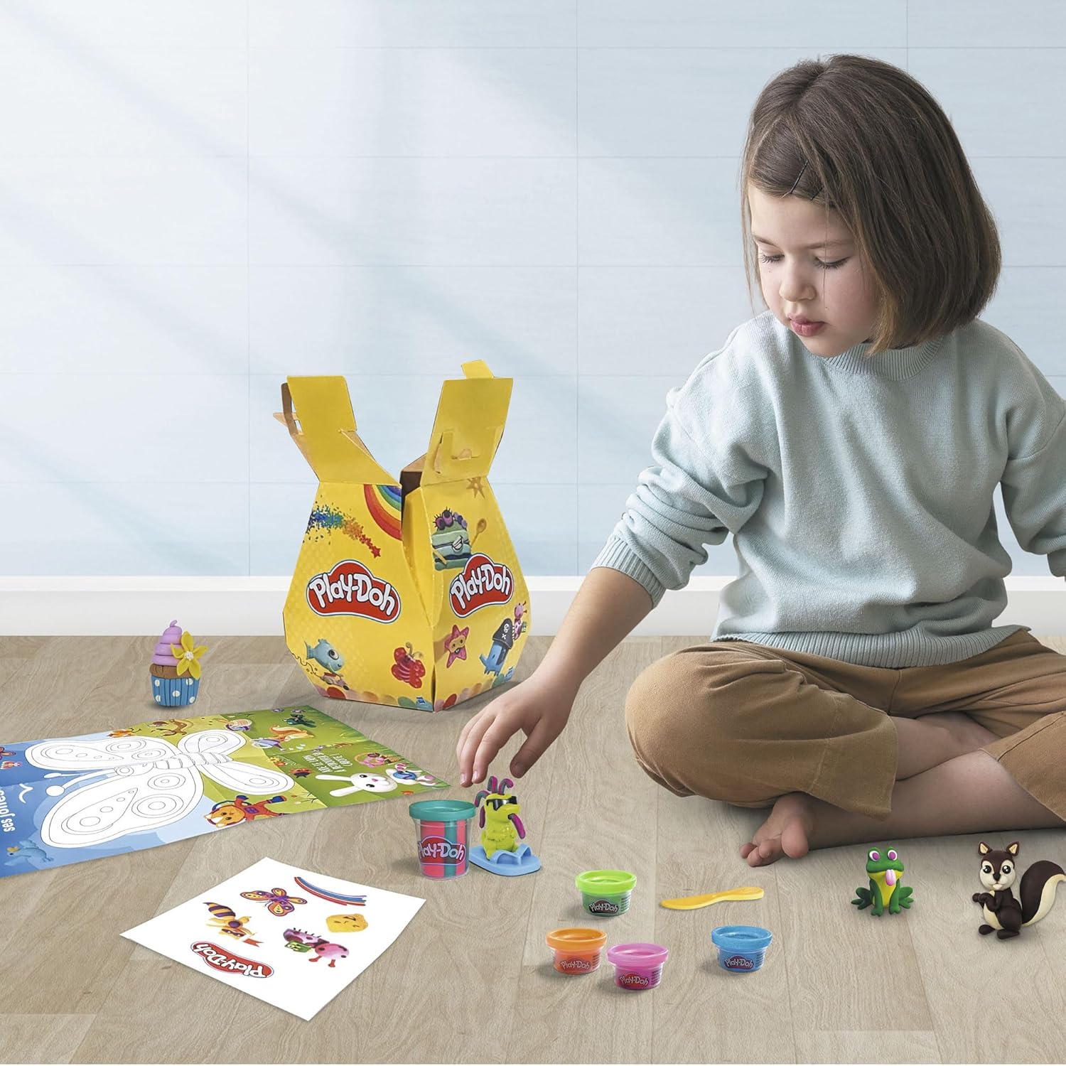 I bambini potranno divertirsi e dare sfogo alla loro immaginazione con la nuova scatola surpise Play-Doh! La scatola a sorpresa contiene un playset (vaso + estrusore), un assortimento di 4 barattoli, un foglio di adesivi e un tappeto interattivo A3. Cosa immaginare un sacco di storie colorate Ideale come regalo di compleanno o di Pasqua *Immagini non contrattuali. L'assortimento di prodotti all'interno può variare da quanto illustrato.