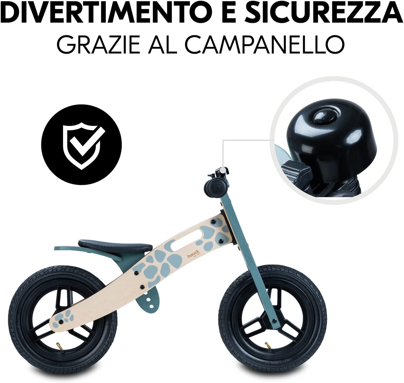 Bici per bambini: la bicicletta senza pedali per bambini è ideale per imparare ad andare in bici, perché non solo fa divertire il bimbo, ma rafforza anche i muscoli e allena le capacità motorie Ruote ad aria: le ruote ad aria della bicicletta bambini senza pedali sono dotate di cuscinetti a sfera da 12 pollici garantendo una guida piacevole. Le robuste valvole sono comode da gonfiare Divertimento e sicurezza: il campanello della balance bike aggiunge divertimento e permette al bambino di farsi notare. Le impugnature gommate garantiscono una buona presa Facile da trasportare: grazie alla maniglia integrata nel telaio e al peso ridotto, è possibile trasportare facilmente la bici legno senza pedali quando il bimbo sarà stanco Un bene per l'ambiente: il legno della bicicletta per bambini proviene da foreste certificate FSC. Questo garantisce un uso sostenibile ed ecologico delle foreste, proteggendo piante e animali