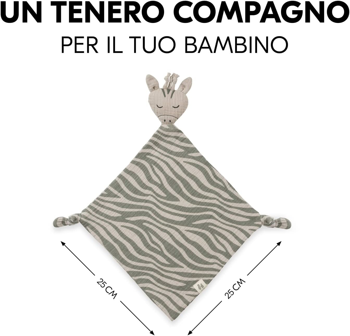 Il primo amico del tuo neonato: Cuddle N Play è il morbido dou dou che coccola, consola e accompagna il tuo bimbo o la tua bimba ovunque – una fonte di sicurezza fin dalla nascita Morbido e delicato sulla pelle: Realizzato in mussola di cotone, il dudu per neonati quadrato 25 x 25 cm è soffice e traspirante – ideale per culla, passeggino o in viaggio Divertente e rilassante: Il gioco neonato con angoli nodati stimola il tatto e la curiosità del tuo bambino, aiutandolo anche a rilassarsi e ad addormentarsi serenamente Regalo nascita: I teneri design come zebra, leone, coniglio o volpe sono ideali per parenti e amici in occasione di nascite, battesimi o baby shower, nonché un accessorio per la torta di pannolini Facile da lavare: Il dudu neonati è lavabile in lavatrice a 60 °C per garantire igiene quotidiana – sempre pronto per nuove coccole e avventure