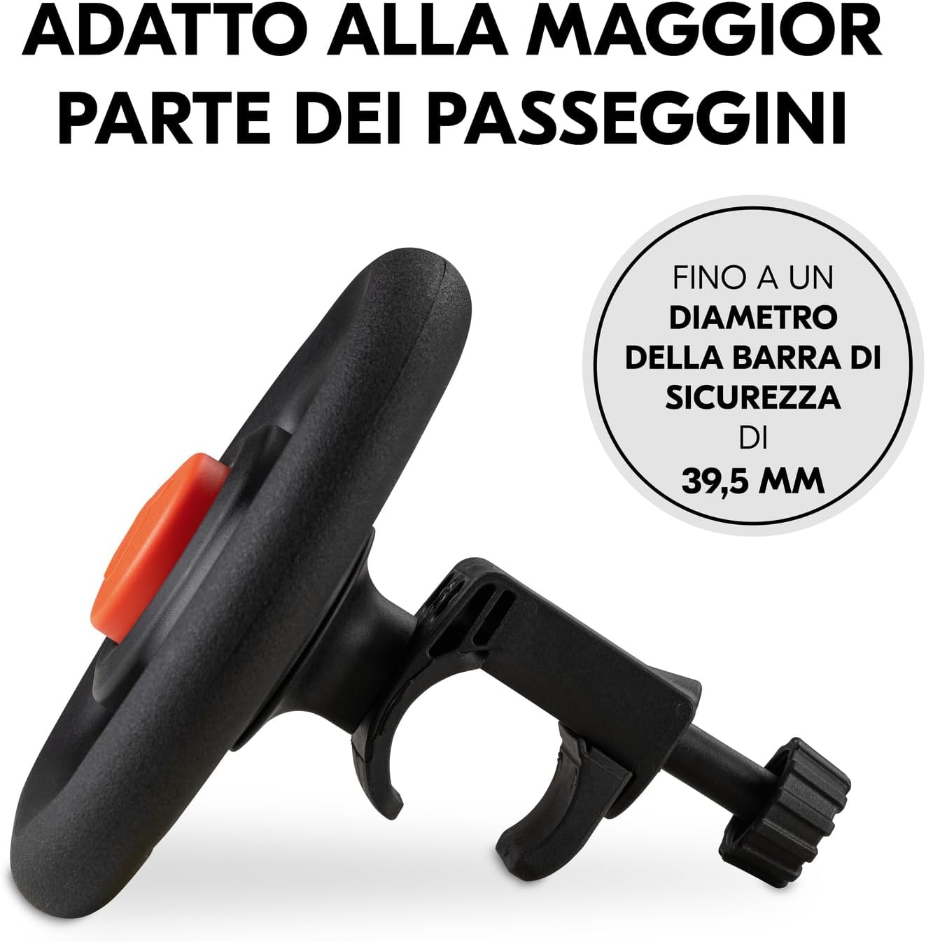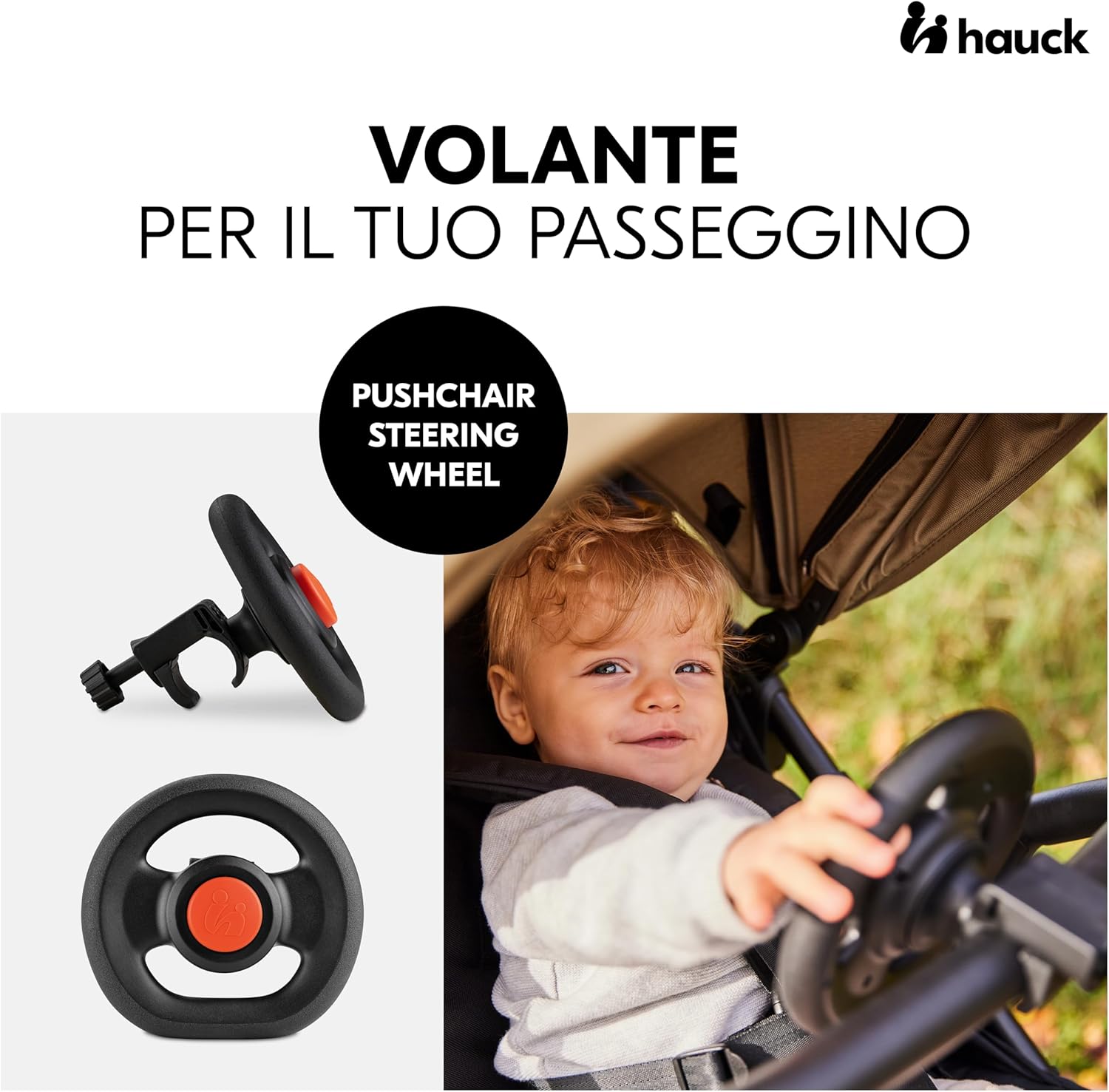 Gioco volante interattivo per passeggino: Il volante giocattolo per bambini trasforma ogni passeggiata in un'avventura - il bimbo può sterzare e simulare la guida come in una vera auto Clacson per ancora più divertimento: Il volante può essere girato facilmente con le manine, e il pulsante del clacson emette un suono realistico che il bambino amerà – stimola gioco e immaginazione Facile da fissare: Realizzato in plastica robusta, il gioco neonato 6 mesi si fissa in pochi secondi alla barra del passeggino e può essere rimosso con la stessa facilità Universale: Il volante bambini è adatto a quasi tutti i modelli di passeggino con barra anteriore fino a 39,5 mm di diametro - non compatibile con passeggini privi di barra o con vassoio snack fisso Accessorio originale hauck: Perfetto anche come accessorio per passeggini hauck Runner, Move N Care, Comfort N Care, Uptown, Travel N Care, Rapid 4D, Walk N Care, Citi Neo, Rapid 4, Rapid 4R, Sport