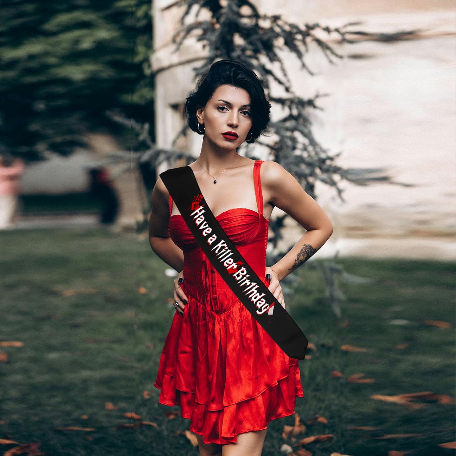 Avete una fascia di compleanno Killer – Mettete una vera dichiarazione con questa fascia accattivante ed elegante – perfetta per vivere un momento di compleanno Have a Killer Birthday. Strega e indimenticabile: ideale come complemento per decorazioni di compleanno streghe o accessori per feste di compleanno per film horror di Halloween. Aggiunge un tocco di glamour cupo a qualsiasi look. Materiale satinato di alta qualità: realizzato in raso morbido e liscio. La fascia è leggera, comoda da indossare e sembra semplicemente fantastica nelle foto. Riutilizzabile e durevole: materiale robusto che può essere utilizzato per diverse celebrazioni, compleanni, Halloween o eventi di gioco di ruolo. GRANDE REGALO PER TE - Sorprendi la tua migliore amica o sorella con una fascia unica che adorerà. Perfetto per compleanni, addii al nubilato e feste di Halloween.