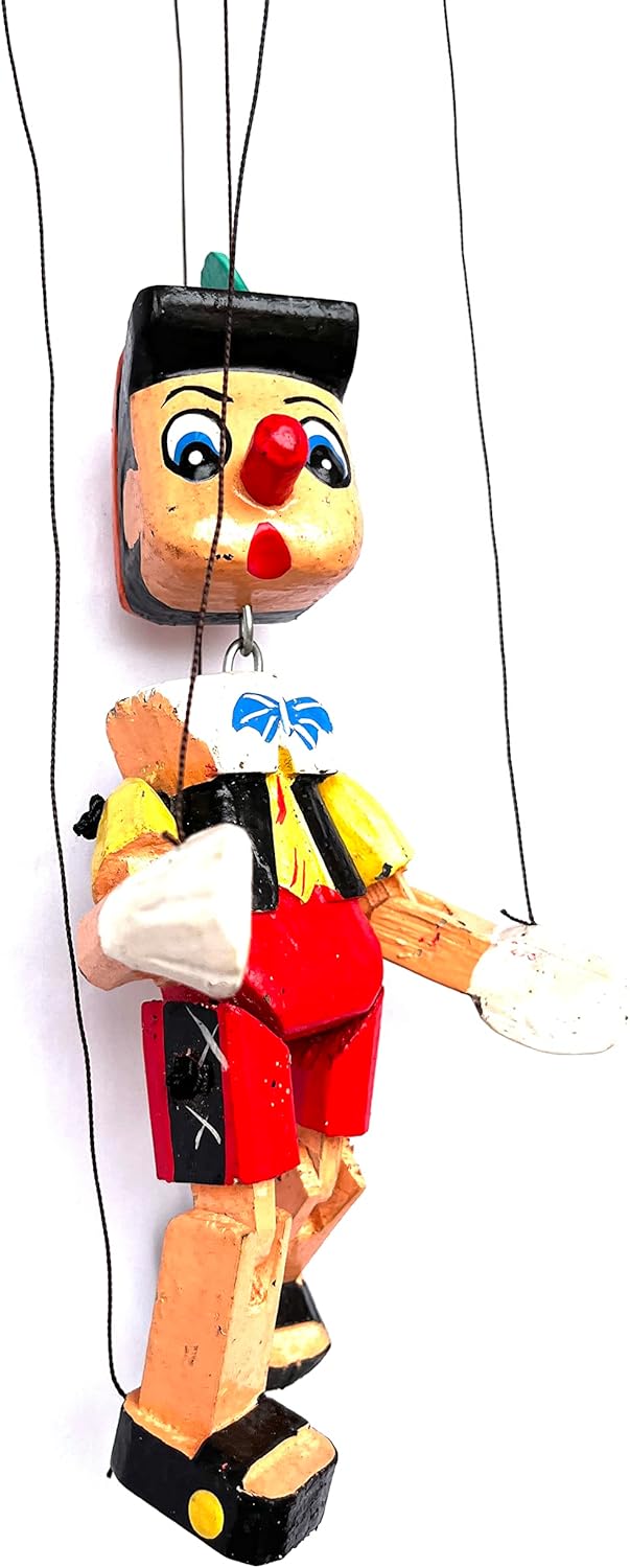 Pinocchio in legno, 20 cm, multicolore Tradizionalmente fatto a mano da artigiani esperti Alta qualità - splendidamente realizzato Fatto a mano in Tailandia Idea per la decorazione della stanza, ecc.