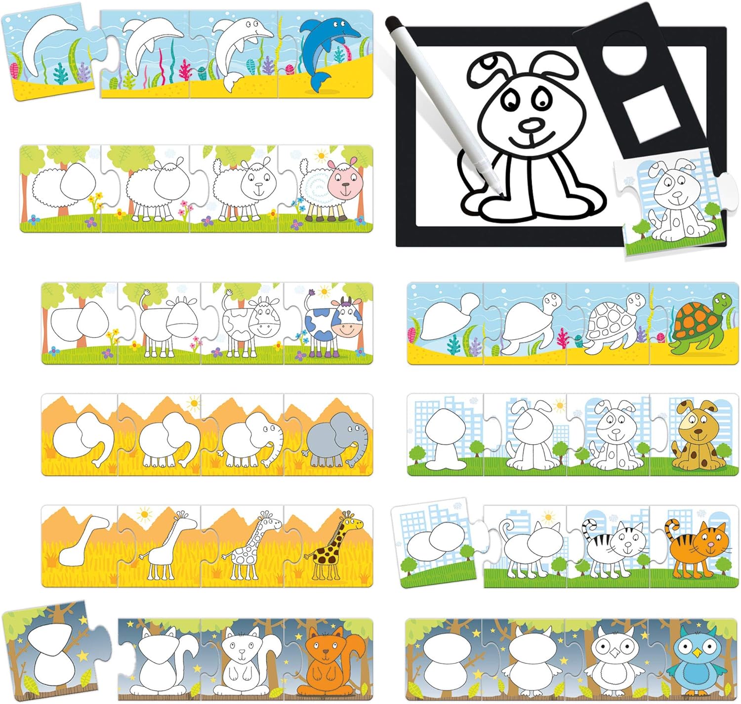 UN GIOCO EDUCATIVO PER RAGAZZI E RAGAZZE: Questo gioco per bambini dai 3 ai 6 anni aiuta i bambini ad imparare divertendosi, sviluppando l'apprendimento del disegno, ideale per bambini dai 3 4 5 6 anni. Un gioco perfetto da usare a scuola o a casa. UN GIOCO DIVERTENTE E INTELLIGENTE: Un kit originale per insegnare ai bambini a disegnare gli animali, passo dopo passo. Il gioco contiene una lavagna speciale e un pennarello cancellabile per sviluppare abilità creative. Un divertente gioco educativo per bambini dai 3 anni in su, un gioco in scatola per imparare divertendosi. CONTENUTI COMPLETI E FUNZIONALI: In questo gioco educativo troverai tutto il necessario per un'esperienza di gioco completa, divertente e appagante. La scatola contiene: 10 puzzle progressivi sugli animali; Pennarello cancellabile; Lavagna cancellabile; Stencil. Ogni elemento è pensato per favorire il coinvolgimento dei bambini, da soli o in gruppo. Un gioco ideale da utilizzare a scuola o a casa, perfetto per sviluppare le competenze essenziali divertendosi. IDEA REGALO ORIGINALE E DIVERTENTE: questo gioco è ideale come regalo per un bambino di 3 anni, regalo per un bambino di 4 anni, regalo per un bambino di 5 anni, regalo per un bambino di 6 anni, una perfetta combinazione di apprendimento e divertimento. Un'ottima idea regalo per compleanni, Natale o qualsiasi altra occasione, questo gioco aiuta a stimolare l'apprendimento del disegno. MATERIALI SICURI E QUALITÀ GARANTITA: Questo gioco è interamente realizzato in Italia, con materiali durevoli, sicuri e certificati CE. Sviluppato da esperti in materia di istruzione, garantisce un'esperienza di apprendimento di qualità. Un gioco educativo per bambini, educativo, affidabile e piacevole da maneggiare.