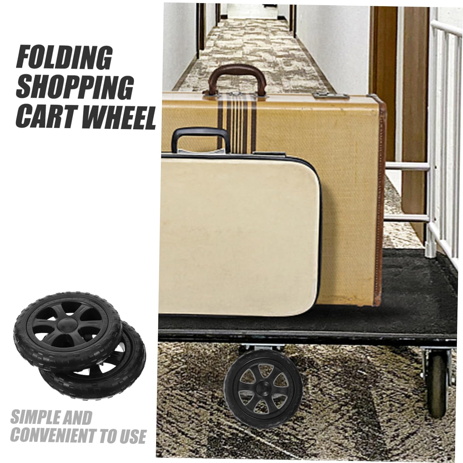 Mobilità più semplice: queste ruote per carrelli della spesa migliorano la manovrabilità dei carrelli della spesa pieghevoli, riducendo lo sforzo necessario per spostare la spesa e rendendo il percorso nei corridoi più agevole e piacevole. Compatibilità versatile: progettate per adattarsi a vari carrelli della spesa e carrelli pieghevoli, queste ruote sostitutive forniscono una soluzione pratica per prolungare la vita delle vostre attrezzature senza compromettere la stabilità. Robusto materiale plastico: la stabile struttura in plastica garantisce una buona resistenza all'usura, garantendo un uso e un rotolamento durevoli, anche in caso di trasporti frequenti in un ambiente urbano o domestico. Semplice e installazione rapida: Grazie ad un design studiato per una facile installazione, queste ruote del carrello si montano facilmente, consentendo la sostituzione senza attrezzi specifici o particolari competenze tecniche Utilizzo quotidiano ottimizzato: Ideali per la spesa settimanale o il trasporto della biancheria, queste ruote rafforzano l'affidabilità del tuo carrello pieghevole, facilitando i tuoi viaggi e migliorando il comfort durante le tue attività quotidiane