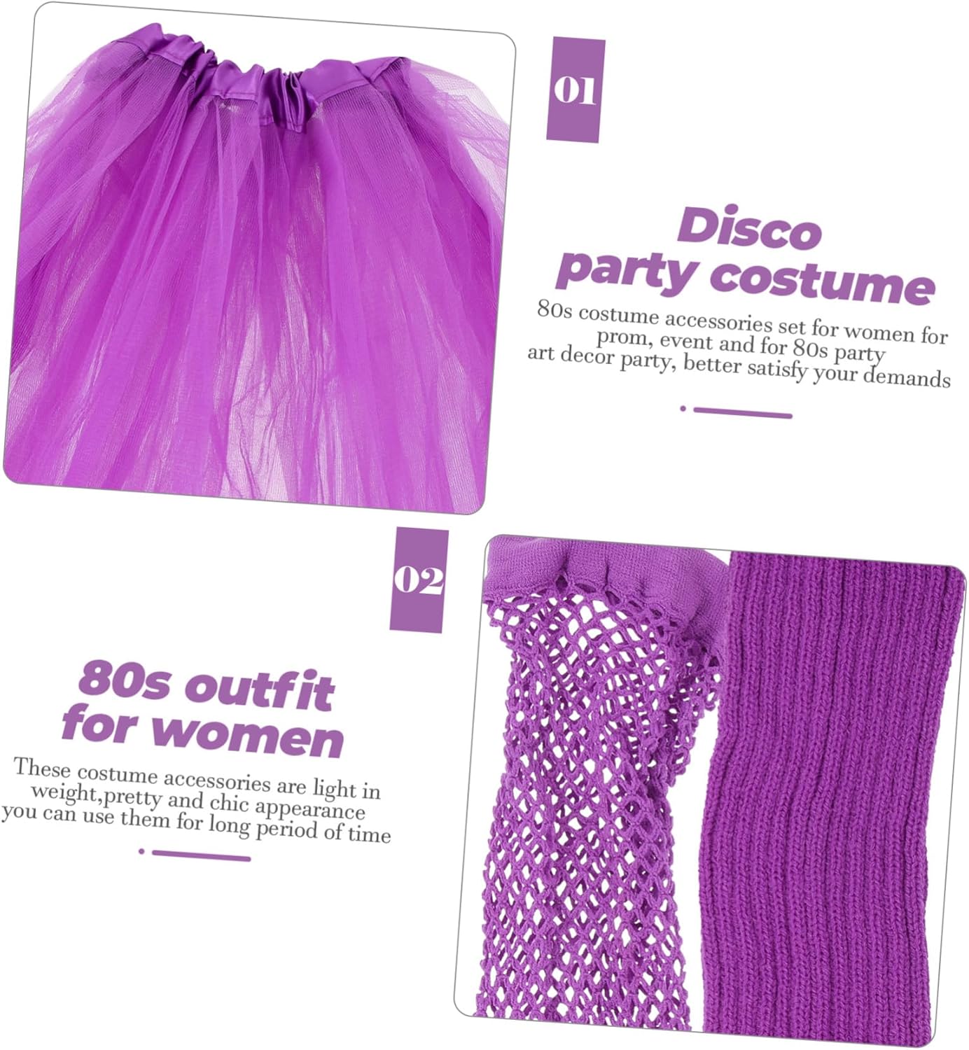 dei pacchetti 1 fascia larga per 1 fascia per 1 paio di occhiali 4 collane 4 braccialetti 1 paio di orecchini 1 paio di guanti 1 vestito 1 paio di scaldamuscoli 1 Caratteristiche - Dimensioni: 7,50X7,50X1,00 cm/2,95X2,95X0,39 pollici Abito anni '80 per donna -Materiale: collana anni '80 in plastica, pizzo e raso - Dimensioni: 14,00X4,00X0,50 cm/5,50X1,57X0,20 pollici Costume da ballo anni '80 - Dimensioni: 40,00X1,00X0,50 cm/15,72X0,39X0,20 pollici costumi da festa da donna - Dimensioni: 11,00X2,50X2,00 cm/4,32X0,98X0,79 pollici Accessori anni '80 per donna - Dimensioni: 40,00X7,00X1,00 cm/15,72X2,75X0,39 pollici accessori per costumi da ballo - Dimensioni: scaldamuscoli da donna 15,50X15,00X5,50 cm/6,09X5,89X2,16 pollici - Dimensioni: 80,00X38,00X2,00cm/31,44X14,93X0,79in Accessori anni '80 per donna - Dimensioni: 40,00X15,50X1,50 cm/15,72X6,09X0,59 pollici accessori per costumi da festa - Dimensioni: 15,00X13,00X8,00cm/5,89X5,11X3,14 pollici costumi da donna anni '80 - Dimensioni: 20,00X5,50X0,50 cm/7,86X2,16X0,20 pollici accessori per costumi anni '80 per donne Descrizione della merce accessori per costumi anni '80 per donne Lo stile retrò ti renderà davvero unico e accattivante alla tua festa. Costume da ballo anni '80 Questi accessori per costumi anni '80 sono realizzati in materiale leggero per un uso durevole e prolungato. accessori per costumi da donna Comodi da indossare, questo kit di costumi contiene molti accessori adatti alla maggior delle persone, i vivaci ti rendono più attraente alla festa degli anni '80