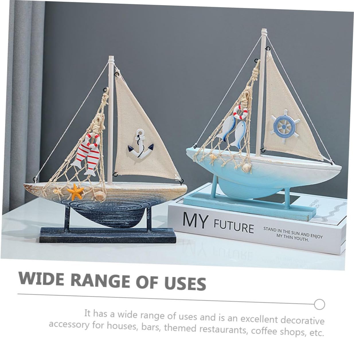 Modello di barca a vela in stile mediterraneo: questo modello di barca a vela ha un temperamento unico ed è una perfetta combinazione di arredamento nautico moderno e retrò per esterni Decorazione da tavolo in legno per barche nautiche: lavorazione e dettagli rendono questo modello di barca a vela realistico e realistico, barca a vela Decorazione a forma di barca a vela: lascia che la vita mostri la delicatezza, ingegnosamente in una varietà di case, tutto lo stile corrispondente, piccoli per la decorazione della scrivania della casa Modello creativo di barca a vela: colore brillante, decorazione unica, utilizzabile in soggiorno, caffetteria, sala da pranzo, camera da letto, studio, arredamento marino Ornamento decorativo a forma di barca a vela per ufficio e soggiorno: dimensioni compatte e peso leggero, questo decoro può essere posizionato sulla scrivania in modo sicuro e comodo, artigianato in legno in stile mediterraneo