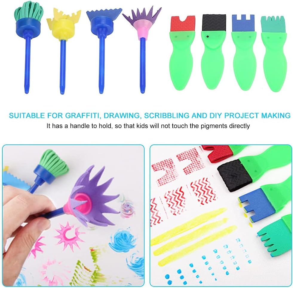 [Espressione Creativa] Questo kit di pittura con spugna per bambini presenta 12 pennelli unici e 4 sigilli giocattolo per la creazione infinita di modelli. [Pittura con le mani pulite] Ogni pennello è progettato con un manico, che mantiene le mani dei bambini pulite e prive di vernice mentre esplorano la loro creatività. [Divertimento educativo] Ideali per i corsi d'arte della prima infanzia, questi strumenti promuovono la creatività e l'immaginazione nei giovani artisti. [Sicuro e facile da usare] Ottimo per bambini piccoli e bambini in età prescolare, offre un'introduzione alle attività di pittura e artigianato. [Buona scelta ] Ottimo per feste di compleanno e occasioni festive, incoraggiando il gioco fantasioso e le capacità artistiche nei bambini.