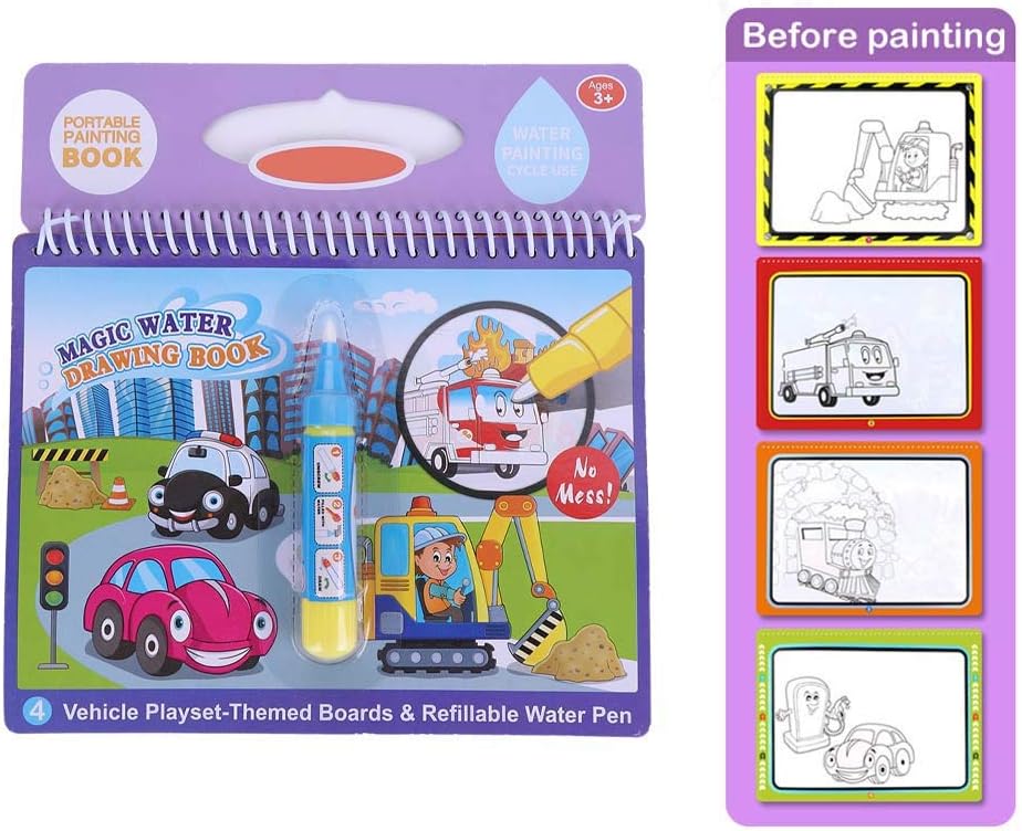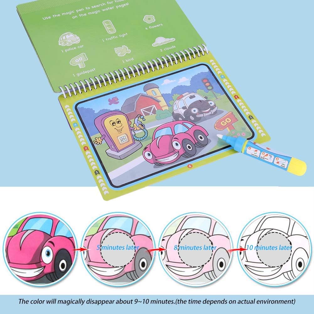 Riutilizzabile e divertente --- Guarda come i colori appaiono magicamente e poi scompaiono dopo che l'acqua evapora, consentendo ai bambini di dipingere le stesse pagine più e più volte. questa funzionalità riutilizzabile offre infinite ore di divertimento creativo e apprendimento. Giocattolo educativo --- Progettato per ispirare lo sviluppo artistico precoce, questo giocattolo prescolare aiuta i bambini ad apprendere le forme dei colori e a migliorare la coordinazione occhio-mano. è un ottimo modo per coltivare la creatività e le capacità motorie nei bambini piccoli. appropriato --- Scegli tra temi divertenti come il dinosauro della fattoria dei veicoli o il trucco di bellezza per soddisfare gli interessi di tuo figlio. questo libro di disegno acquatico educativo e divertente è un meraviglioso per le vacanze di compleanno o qualsiasi occasione speciale. Colorazione pasticciata --- Il libro da colorare ad acqua viene fornito con una penna ricaricabile che richiede acqua per creare colori vivaci. nessun pigmento disordinato sui vestiti e sulle mani lo rende un'attività artistica pulita e per i bambini piccoli. Design portatile --- Con la sua leggera rilegatura a spirale e le pagine a fogli sciolti, questo libro da colorare è facile da trasportare e adatto ai viaggi. le pagine flessibili girano agevolmente rendendolo ideale per l'uso a scuola o in viaggio.