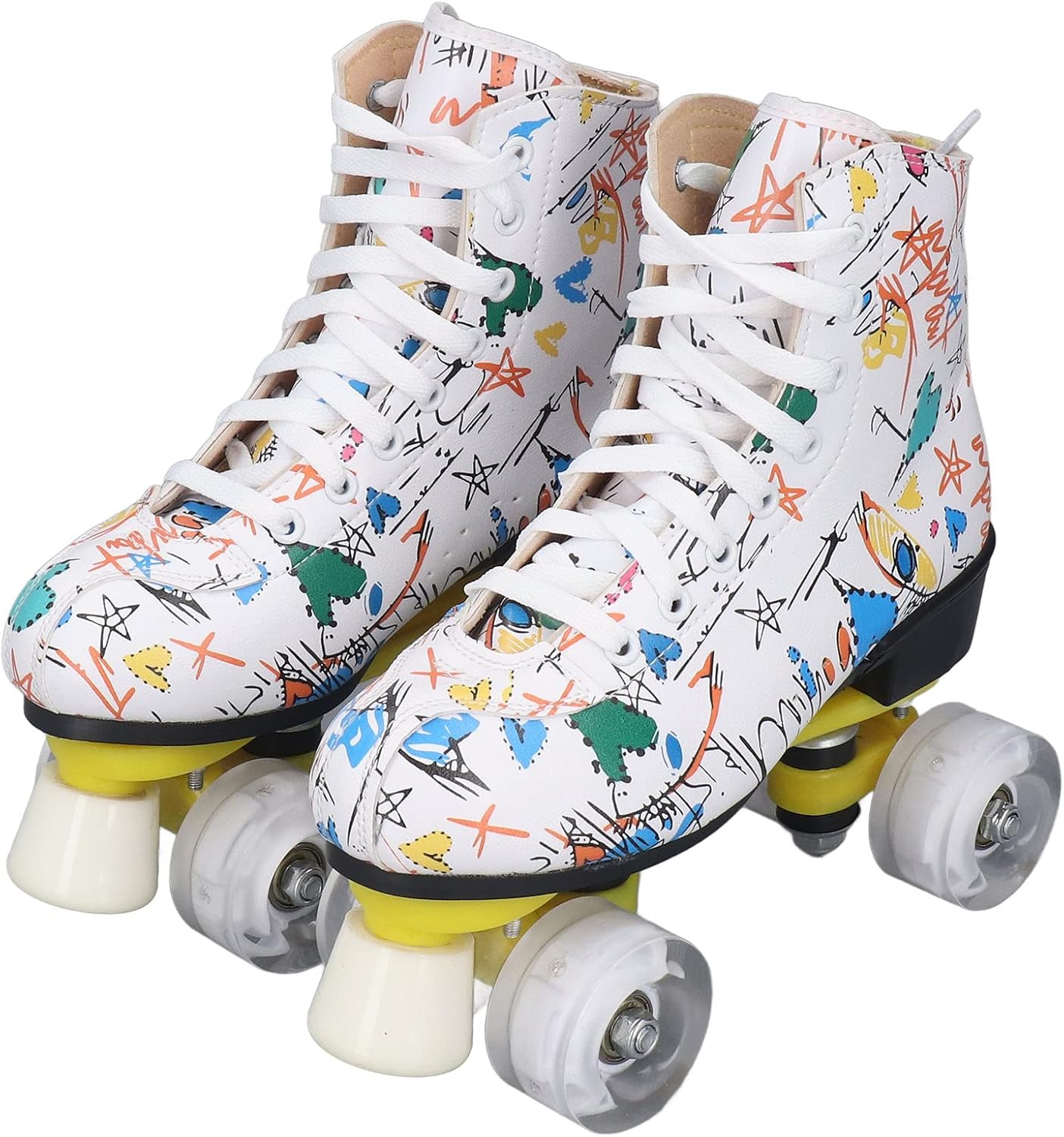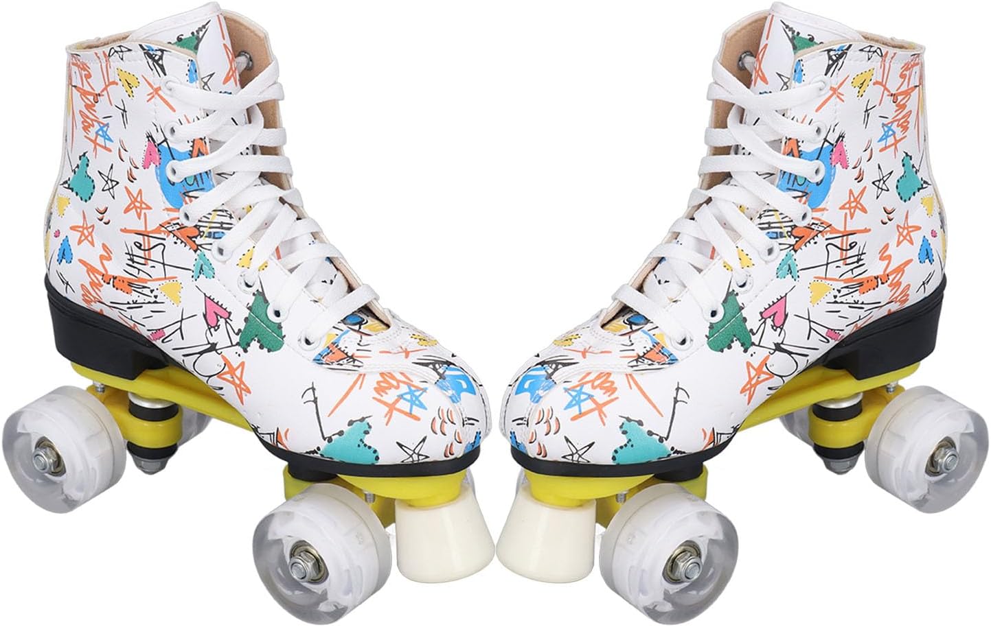 Materiale robusto e durevole: i pattini a rotelle sono dotati di robusti pattini a quattro ruote realizzati con materiali stampati durevoli, che possono fornire prestazioni di pattinaggio sicure e affidabili. Le ruote lucide ti rendono più fresco quando pattini. Traspirabilità interna: la traspirabilità interna dei pattini a rotelle a doppia può aiutare i tuoi piedi a dissipare rapidamente il calore, evitare l'odore del piede e prevenire il sudore, permettendoti di goderti appieno lo scivolamento. Colonna di supporto anteriore: c'è una colonna di supporto davanti, molto adatta ai principianti. Può mantenere meglio il controllo e la frenata rapida. Questa struttura garantisce che la staffa non venga danneggiata. Comfort e sicurezza: questi pattini a rotelle utilizzano scarpe alte controllabili per garantire una sicurezza ottimale, mentre i lacci delle scarpe premium offrono la massima protezione per garantire comfort e sicurezza del piede. Ampie applicazioni: i pattini a rotelle dai colori vivaci sono il per bambini, ragazzi, ragazze e fidanzati, fidanzate o famiglia. È anche una scelta ideale per il pattinaggio indoor e outdoor.