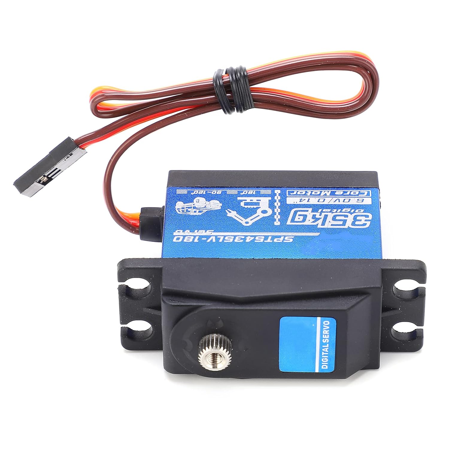 1. Realizzato in lega di alluminio di alta qualità, materiale plastico e componenti elettronici, con forte tenacità, robustezza, durata e lunga durata. 2. Forma compatta, non occupa spazio ed è facile da trasportare quando esci. 3. Funzione di protezione del rotore bloccato. Quando il servo è continuamente bloccato o l'angolo del rotore bloccato è maggiore di 3 gradi, la durata è di 10 secondi e la corrente rimane al di sopra di 2,5 A, il servo inizierà a proteggere e la corrente scenderà fino a fermarsi. 4. La scatola dello sterzo ha una funzione di avvio lento, difficile da vedere ad occhio nudo. La corrente del servo è relativamente grande all'avvio o all'inversione. Con questa funzione, la vita del server è relativamente lunga. 5. Adatto per auto da arrampicata con telecomando 1:8 o 1:10, car, fuoristrada, camion per percorsi brevi, . Specifiche tecnicheifiche: Tipo di articolo: Servo da 35 kg Modello: SPT5425LV 35KG Peso: circa 87 g/3,1 once Materiale: lega di alluminio + plastica + componenti elettronici Zona morta: 4μs Neutro: 1500 μs / 330 Hz Angolo del telecomando: 90° Angolo 500-2500μs: 180°/pwm Intervallo di tensione: 4,8 V-6,0 V Velocità di lavoro (4,8 V): 0,16 pollici/60° Velocità di lavoro (6,0 V): 0,14 pollici/60° Coppia di arresto (4,8 V): 29 Kg/cm Coppia di arresto (6,0 V): 35 Kg/cm Motore: motore principale, Telecomando Adatto per: Auto da arrampicata telecomandate in scala 1:8 o 1:10, Car, fuoristrada, camion per percorsi brevi, . Come si usa: 1. Regolare i parametri del telecomando, quindi procedere all'installazione dello sterzo. Quando si installa la scatola dello sterzo, il passaggio fondamentale è installare prima la scatola dello sterzo sulla base della scatola dello sterzo.2. Dopo aver fissato lo sterzo, accendere il telecomando, seguire le impostazioni di cui sopra, quindi accendere l'ESC (il camion dell'olio deve accendere l'interruttore di alimentazione del ricevitore. Lista Imballaggio: 1 servo 4 bracci del servo 5 viti 8 accessori Nota: 1. Si prega di consentire un errore di 0-1 pollici dovuto alla misurazione manuale. Grazie per la comprensione. 2. I monitor non sono calibrati allo stesso modo, il colore dell'articolo visualizzato nelle foto potrebbe essere leggermente diverso dall'oggetto reale. Per favore prendi quello vero come standard.