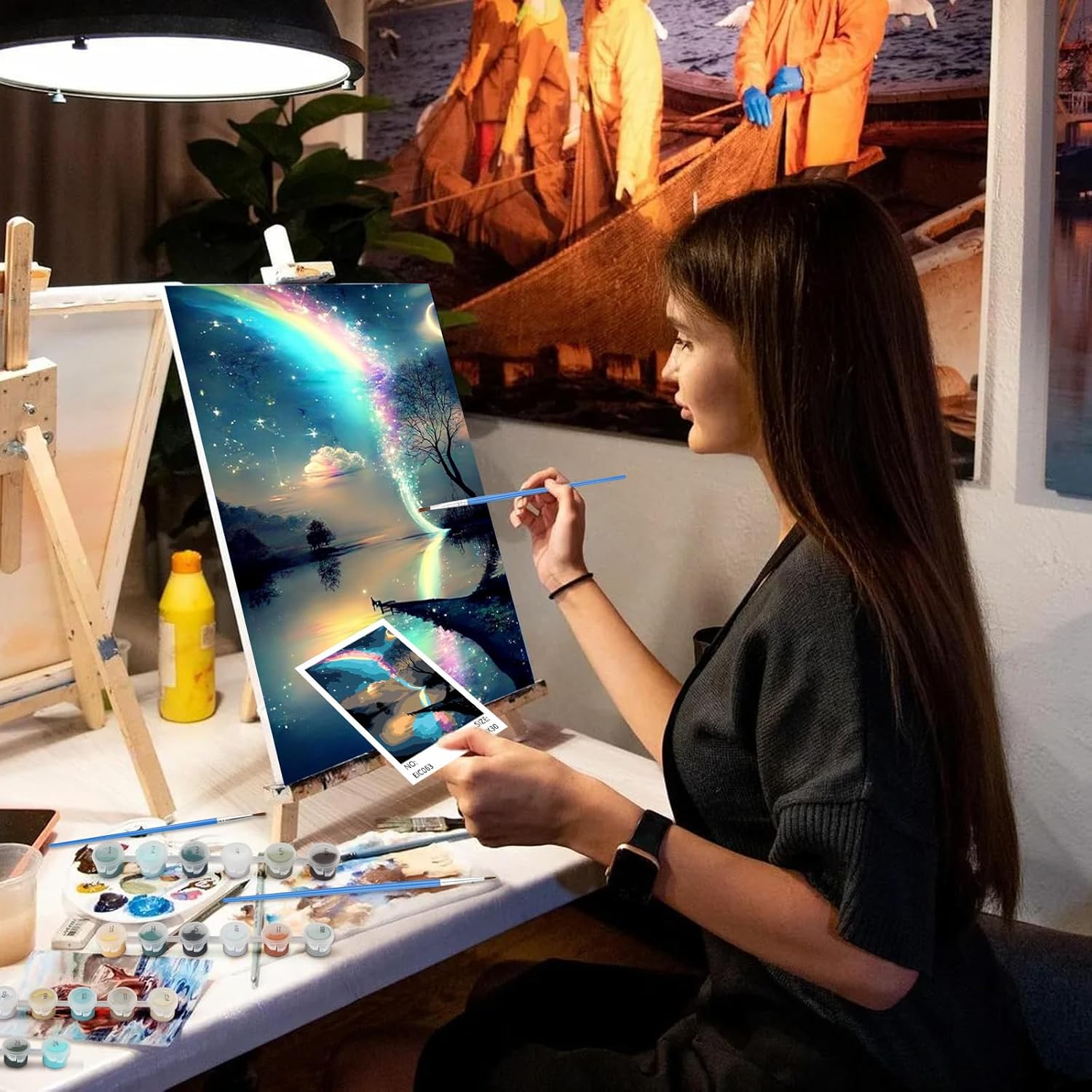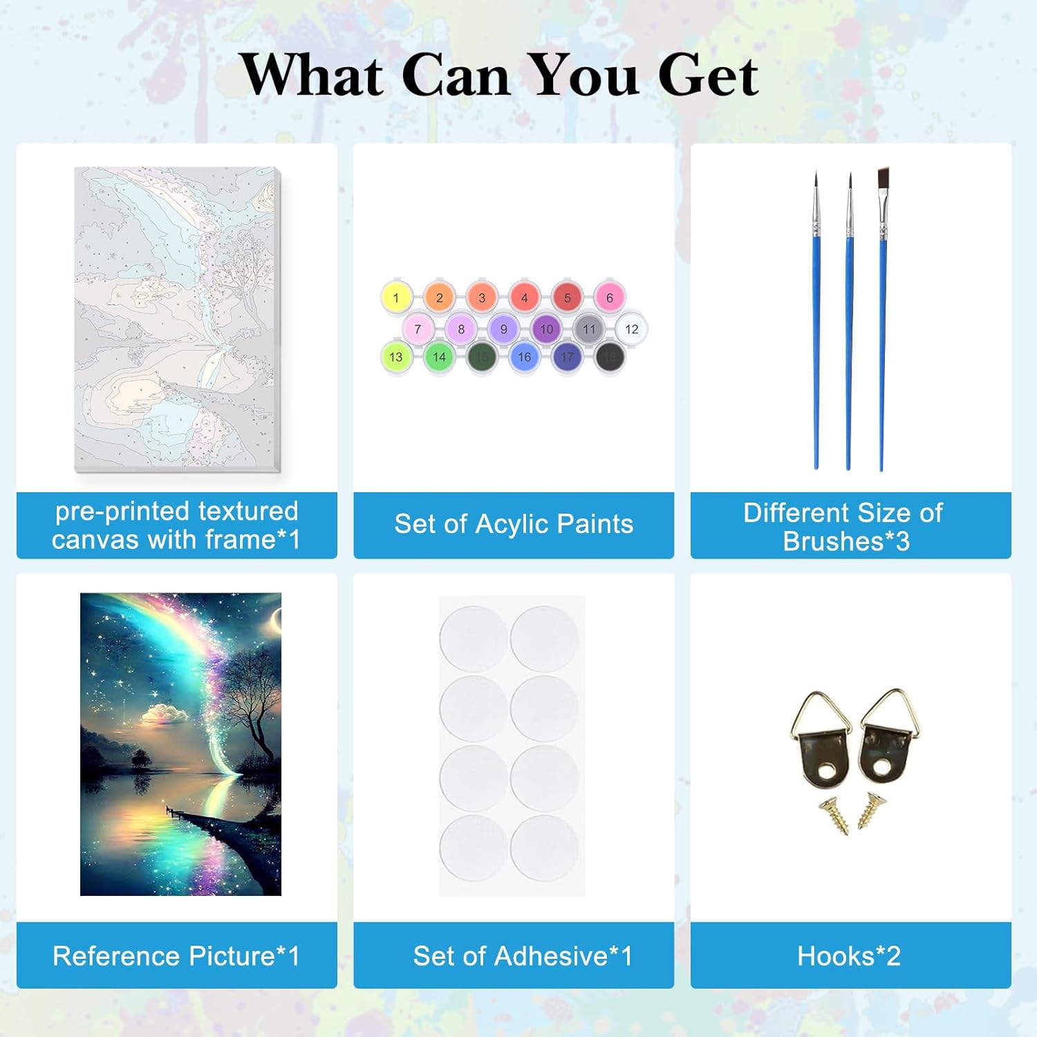 Kit di pittura con numeri: la pittura con i numeri utilizza materiale acrilico, i colori sono chiari e proteggono la vista. I numeri sulla tela sono chiaramente visibili, rendendo facile trovare i colori corrispondenti, evitando così l'affaticamento degli occhi Facile da dipingere: il prodotto con un manuale di istruzioni (lingua italiana non garantita) è sufficiente seguire i passaggi nel manuale di istruzioni per completare facilmente il processo. Basta usare un pennello per applicare il colore corrispondente nella posizione corrispondente Contenuto della confezione: quattro tele testurizzate HD con cornice, tre pennelli di diverse dimensioni, quattro set di colori acrilici in diversi colori, quattro immagini di riferimento e guida a colori da cartolina GODERE LA FELICITÀ: Finire il dipinto è una cosa gioiosa. Puoi completare la pittura con i numeri con il tuo amico per migliorare le loro abilità pratiche, capacità estetiche, migliorare la fiducia in se stessi. Nel processo, puoi coltivare la relazione genitore-figlio Regalo e decorazione: dipingere con i numeri è adatto a persone di età diverse, come genitori, amici e principianti. Semplici passaggi non renderanno difficile per nessuno. Che si tratti di un regalo di festa, di un compleanno o di un regalo di tutti i giorni, è un'ottima scelta