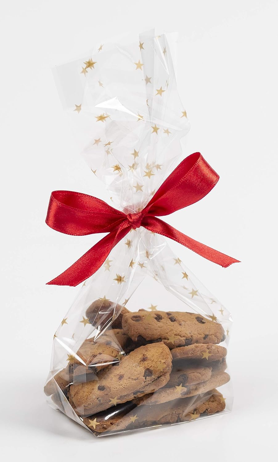 DESIGN STELLE D'ORO: I sacchetti con fondo trasparente per Natale sono stampati con stelle dorate su entrambi i lati, il che li rende particolarmente attraenti e festosi. Sono ideali per il periodo natalizio e per regalare biscotti fatti in casa. ROBUSTO FONDO A CROCE: Le nostre borse con fondo hanno un robusto fondo a croce che garantisce una migliore tenuta. Le borse sono resistenti agli strappi e quindi abbastanza robuste da trasportare anche oggetti più pesanti. MATERIALE IN POLIPROPILENE: Questi sacchetti natalizi sono realizzati in polipropilene (PP), un materiale noto per la sua durata e resistenza alle crepe, all'umidità e agli agenti chimici. ABBASTANZA SPAZIO: Con dimensioni di 160x95x35 mm, i sacchetti offrono spazio sufficiente per una varietà di regali o dolcetti. Sono sia pratici che versatili. GRANDE QUANTITÀ: Con 100 pezzi per confezione, questa quantità è ideale per eventi più grandi o semplicemente da conservare per occasioni future.