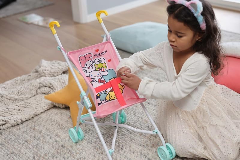 Adorabile design Hello Kitty: arricchisci le ore di gioco del tuo bambino con questo adorabile passeggino per bambole Hello Kitty. Il design bianco e rosa con il simpatico motivo Hello Kitty stimola l'immaginazione del bambino e garantisce ore di gioco magiche. Leggero e pieghevole: questa carrozzina per bambole è facile da controllare e trasportare dai bambini. Il design pieghevole rende il giocattolo facile da riporre e trasportare, perfetto per giocare sia all'aperto che all'interno. Sicuro e stabile: questa carrozzina per bambole Hello Kitty offre un'esperienza di gioco sicura e divertente per il tuo bambino grazie alle sue caratteristiche di sicurezza e alla sua struttura robusta. Promuove il gioco attivo e l'immaginazione: ideale per promuovere il gioco attivo e sviluppare abilità sociali. Con questo passeggino per bambole, i bambini possono creare le proprie avventure di gioco insieme alle loro bambole preferite.