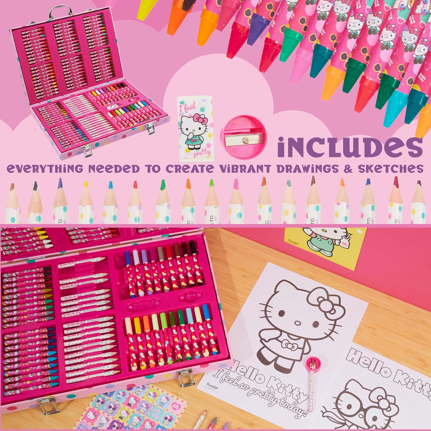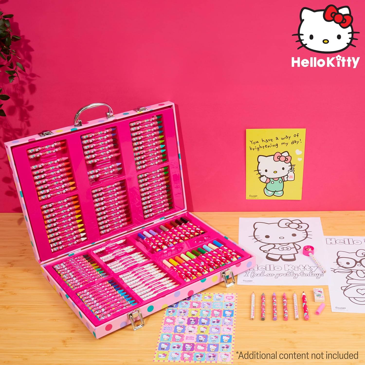 Hello Kitty Set Colori Bambini - Tieni impegnata la tua piccola appassionata di Hello Kitty e stimola la sua immaginazione con questo fantastico valigetta per colorare. Ricco di tutto il necessario per un divertimento creativo e artistico senza fine. Set Disegno Bambini Completo - Questo valigetta colori bambina è disponibile in una pratica custodia e include pennarelli lavabili, pastelli, matite colorate, fogli da colorare, adesivi e molto altro! Dai un'occhiata alle immagini per tutti i contenuti entusiasmanti. Promuove L'apprendimento Creativo - Questo kit artista bambina supporta l'apprendimento e lo sviluppo con vari strumenti per sperimentare tecniche, colori e texture diverse. Comodamente conservato in una custodia pieghevole per un facile trasporto. Ideali Hello Kitty Regalo Bambina - Hai bisogno di un regalo per una giovane fan di Hello Kitty? Questo kit disegno bambina è ideali per Natale, compleanni o occasioni speciali, deliziando qualsiasi ragazza desiderosa di esplorare il suo lato creativo. Prodotti Originali Hello Kitty - Cerchi giocattoli o Hello Kitty accessori? Questo kit disegno bambini è ufficialmente concesso in licenza e contiene tutto il necessario per creare disegni vivaci e dare vita ai loro personaggi preferiti.