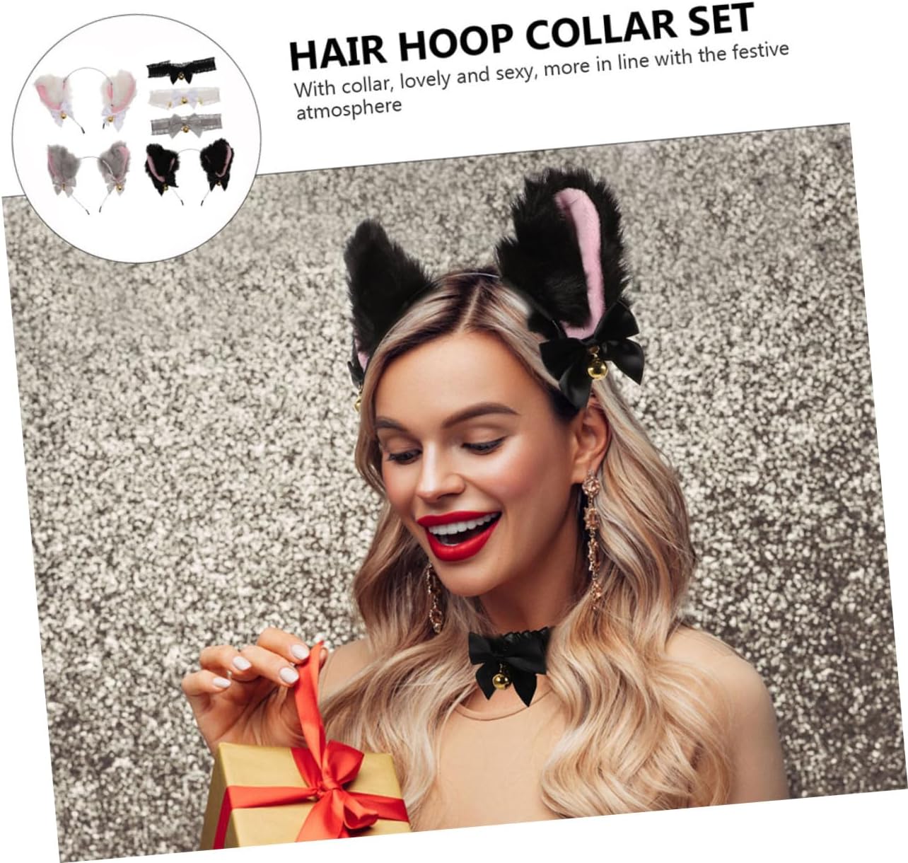Costume - con collare e, in con l'atmosfera , cerchietto con orecchie Choker accessorio - adatto per feste decorativo, forniture per cosplay Choker per feste in maschera: orecchie e decorazioni per choker, aggiungeranno un'atmosfera in maschera Accessorio per feste: , facile indossare e togliere, copricapo con orecchie Fascia decorativa con orecchie : materiale e stabile, non facile deformare, acconciatura per feste in costume