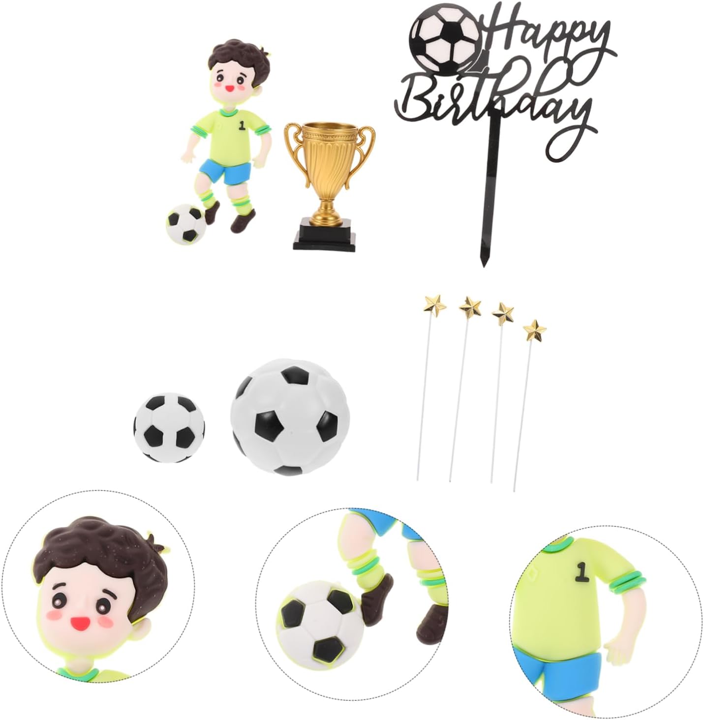 Dettagli elevati: caratterizzati da una lavorazione artigianale dettagliata, questi topper sono adatti agli amanti del calcio da esporre e , topper per torte da calcio per ragazzi, topper per torte da calcio Dettagliato: progettati con dettagli intricati, questi topper sono adatti agli appassionati calcio, decorazioni per cupcake a tema calcio, decorazioni per torte Facile da usare: progettati per un facile posizionamento, questi topper rimangono saldamente in posizione su qualsiasi torta, rendendoli comodi da usare, decorazioni per torte da calcio, statuine da calcio Ampia applicazione: adatte a una varietà eventi, compleanni agli sportivi, queste decorazioni aggiungono un tocco a qualsiasi celebrazione, decorazioni da calcio per torte, decorazioni per torte compleanno a tema calcio Facile posizionamento: semplici da inserire e su qualsiasi superficie della torta, questi topper sono comodi da usare e non richiedono competenze speciali, torta con giocatore calcio, decorazioni per feste calcio