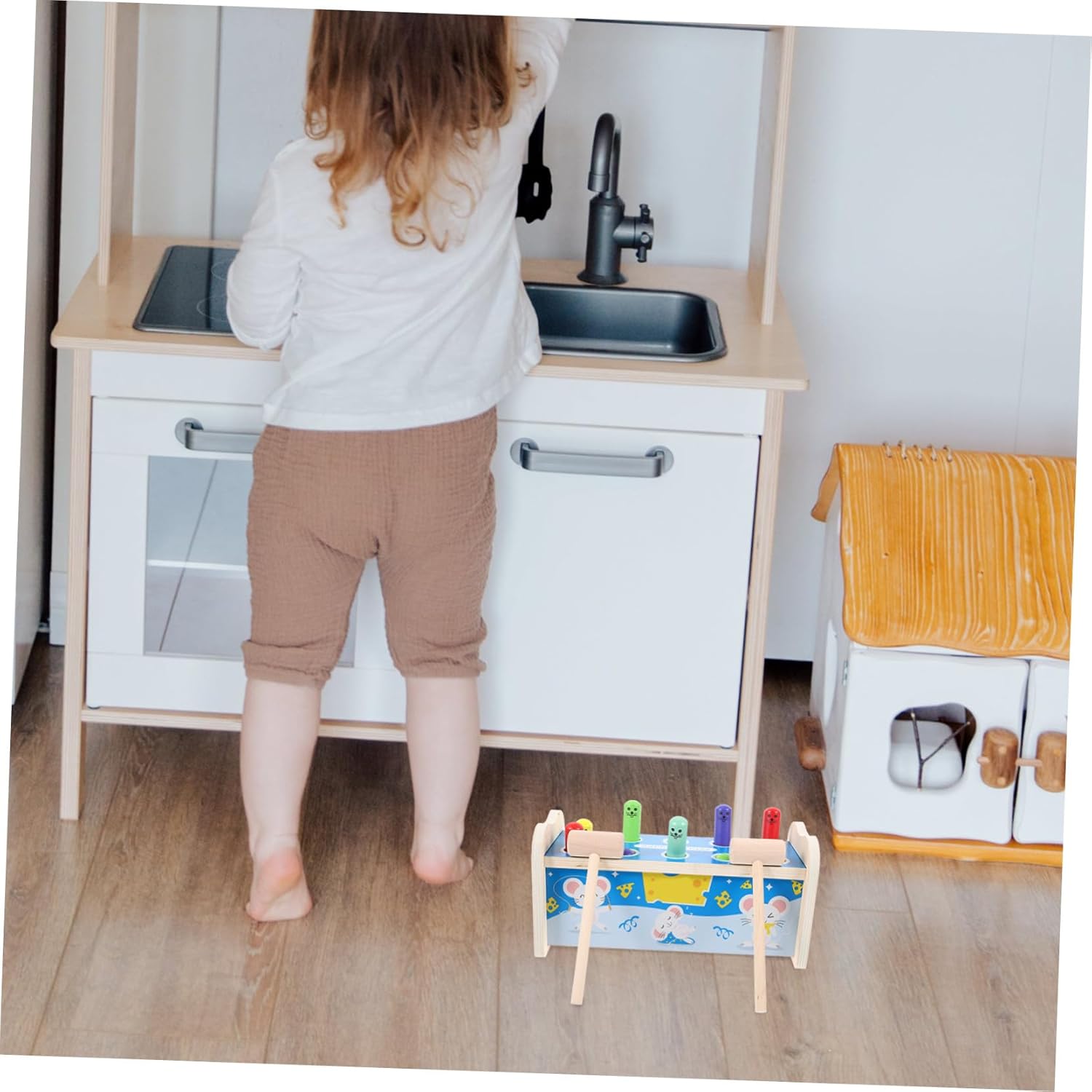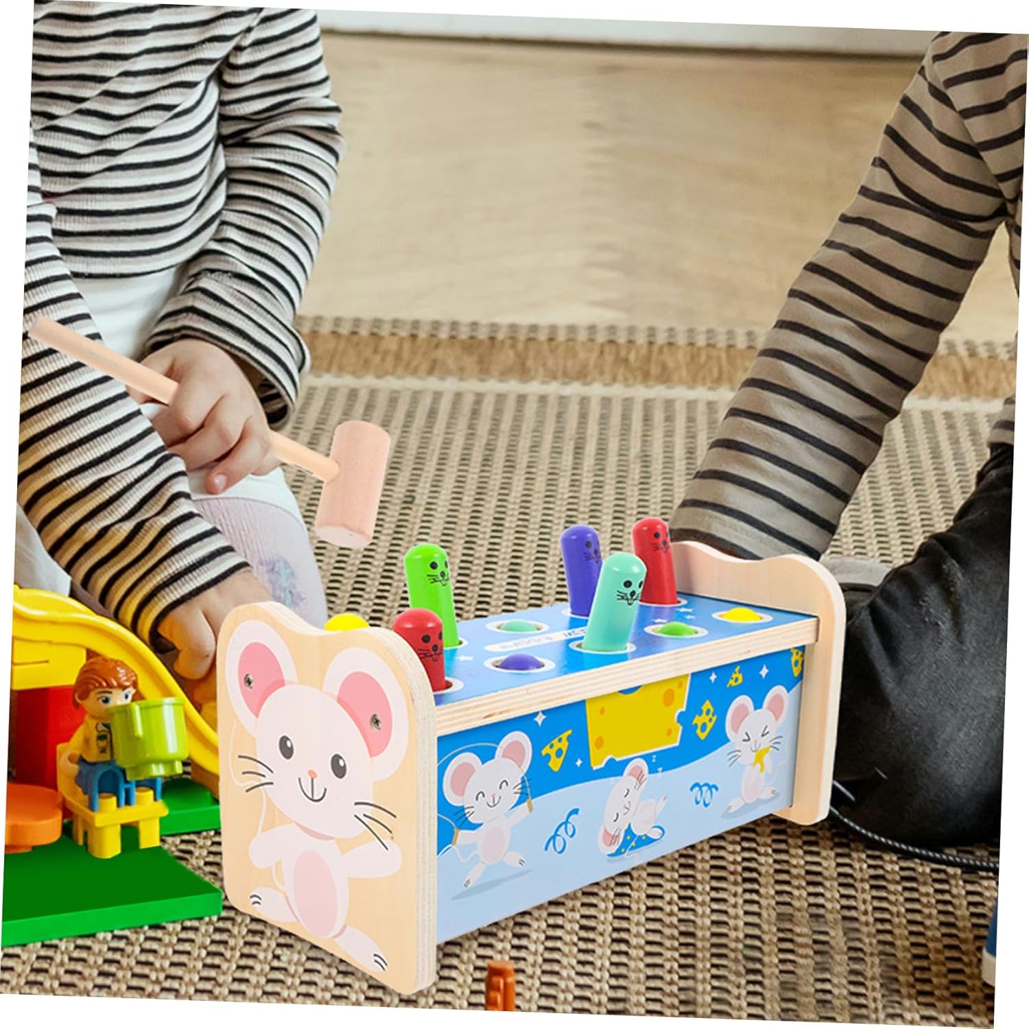 Giocattolo di legno: mini forma di cartone animato, può stimolare meglio il divertimento dei nel giocare, giocattolo da toccare Giocattolo divertente: fai conoscere al i diversi aspetti, ama giocare, lasciati trasportare dall'immaginazione, giocattolo interessante Giocattolo creativo in legno: consistenza densa, dura, resistente agli urti, cuscinetto robusto, non facile da rompere, giocattolo creativo Giocattolo di addestramento: adozione e processo, che lo rendono un regalo perfetto per il , giocattolo educativo Cognizione precoce della discriminazione dei colori: lascia che il impari i colori mentre gioca, giocattolo con palla che bussa, giocattolo per