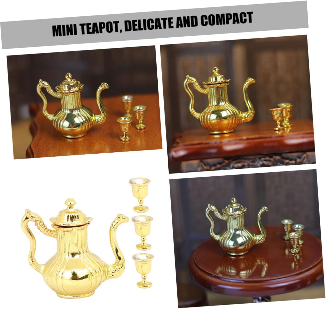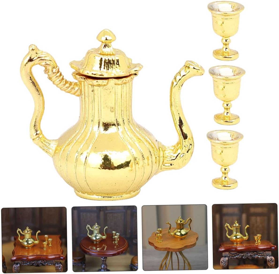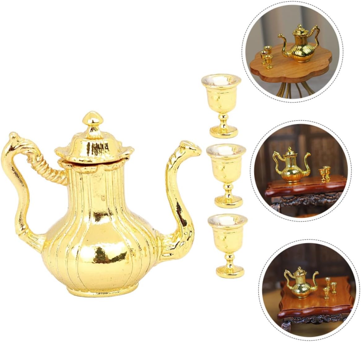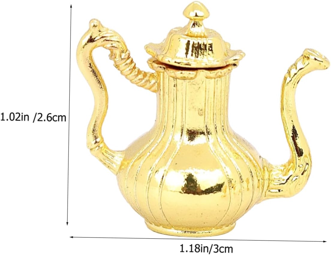 I modelli di set da tè in miniatura squisiti e realistici possono essere utilizzati per gli accessori della mini casa delle bambole. Il antico, aggiunge un'atmosfera culturale alla tua casa delle bambole, soddisfa le tue esigenze di decorazione. Realizzato con materiali in lega e realizzato a mano, garantendo la qualità e la durata del set di teiere. Adatto a diverse scene della casa delle bambole, rendi la tua casa delle bambole più colorata con questo set da tè. Il mini ornamento è realizzato in materiale metallico con lavorazione delicata e buon effetto decorativo.