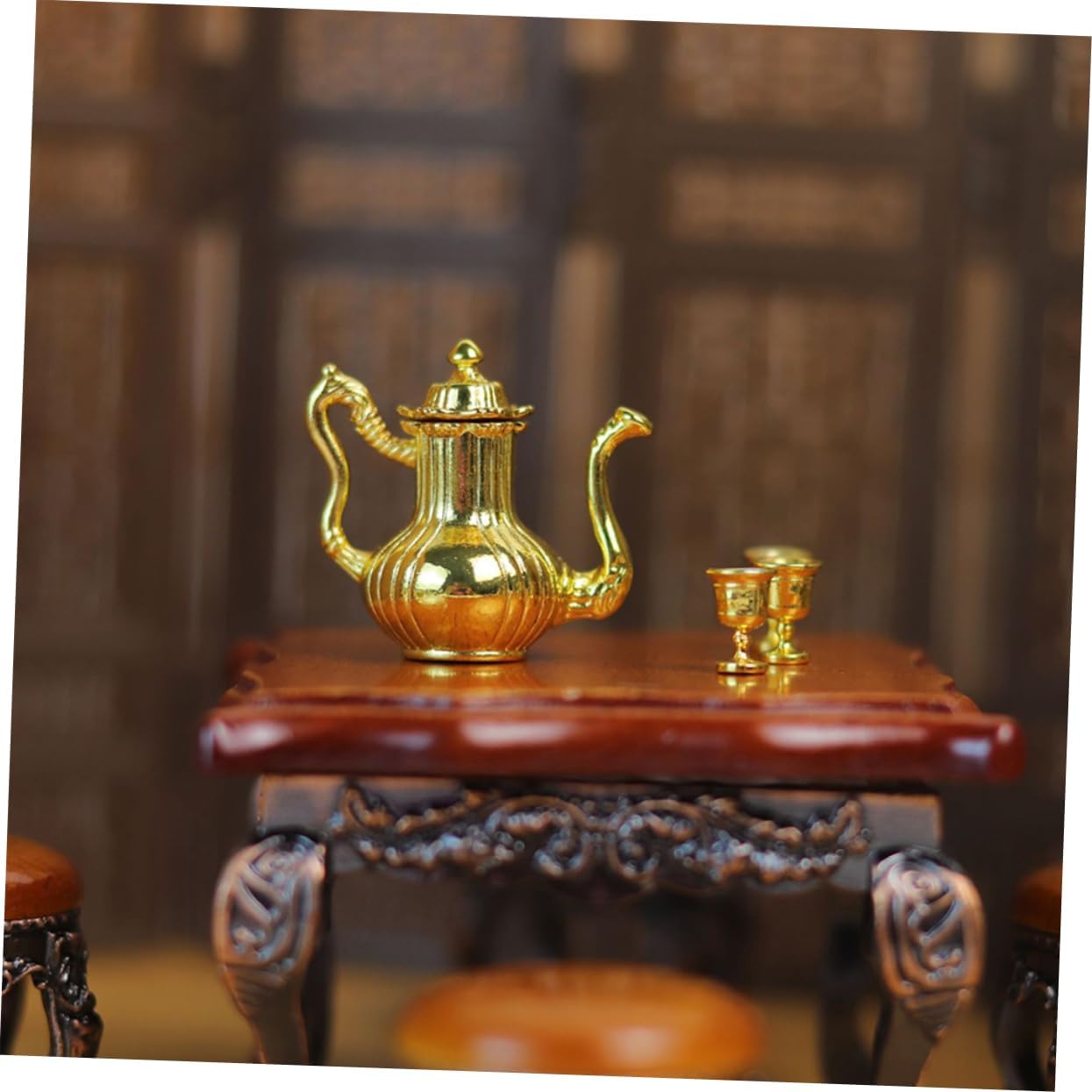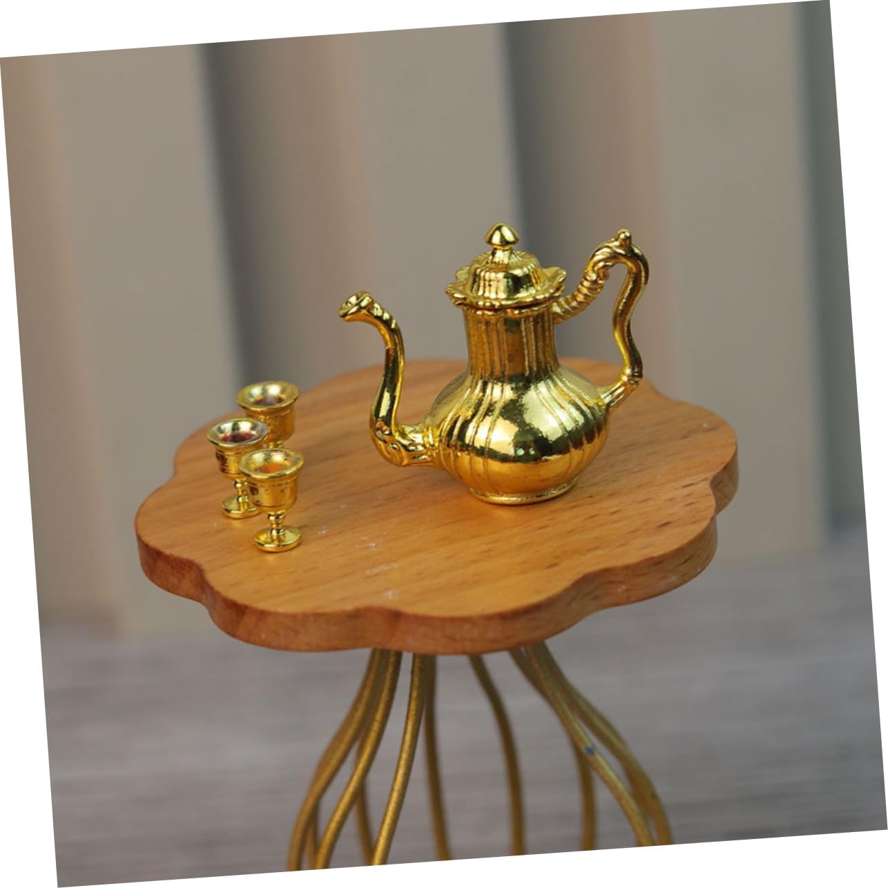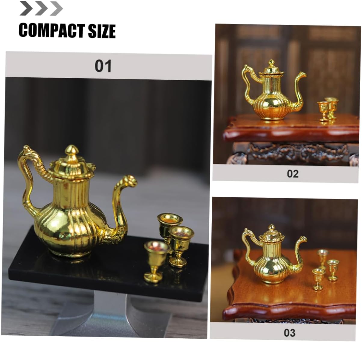 I modelli di set da tè in miniatura squisiti e realistici possono essere utilizzati per gli accessori della mini casa delle bambole. Il antico, aggiunge un'atmosfera culturale alla tua casa delle bambole, soddisfa le tue esigenze di decorazione. Realizzato con materiali in lega e realizzato a mano, garantendo la qualità e la durata del set di teiere. Adatto a diverse scene della casa delle bambole, rendi la tua casa delle bambole più colorata con questo set da tè. Il mini ornamento è realizzato in materiale metallico con lavorazione delicata e buon effetto decorativo.