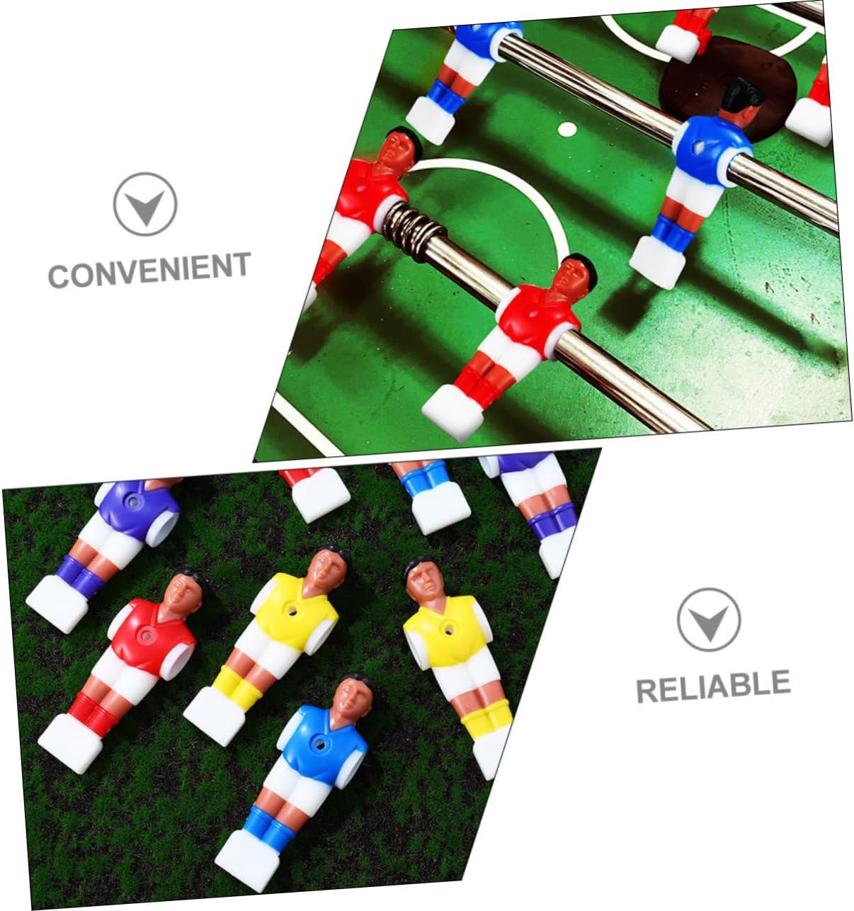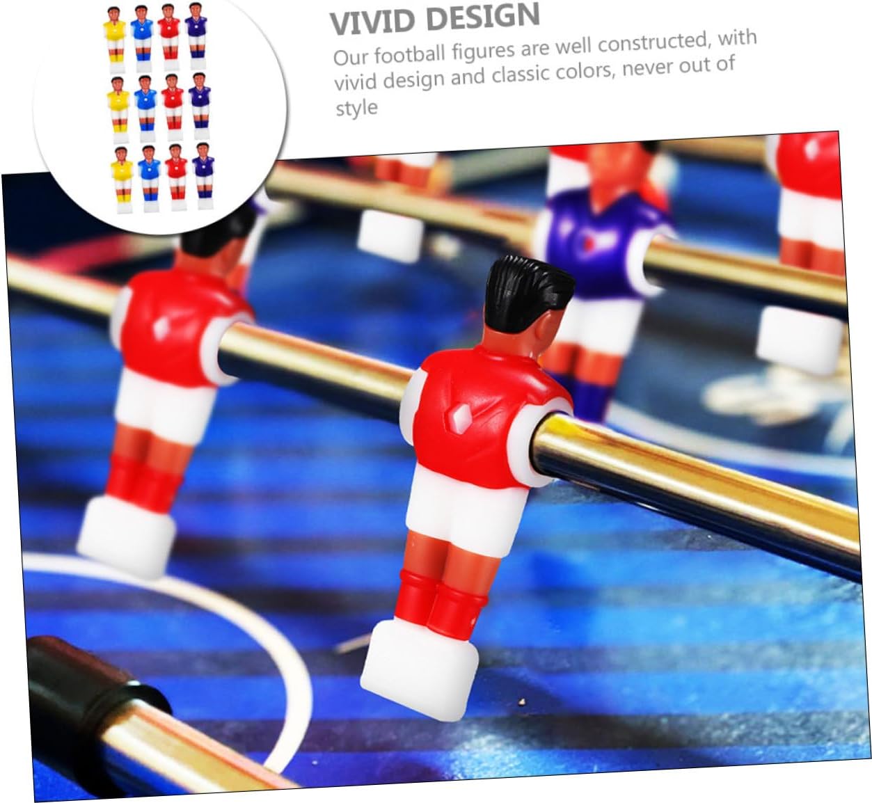 Statuette di giocatori di calcio balilla: realizzate in materiale plastico, ogni bambola raffigurante un giocatore di calcio è costruita, riutilizzabile, antiurto e infrangibile, statuette di giocatori di calcio da tavolo Parti del tavolo da calcio balilla: la maggior dei tavoli e dei produttori utilizza aste da calcio standard, quindi le statuette da calcio balilla possono adattarsi a qualsiasi di esse, statuette da calcio Gioco del calcio balilla: queste action figure da calcio sono ottimi sostituti per quelli vecchi o rotti, facili e comodi da usare, accessori per il calcio balilla Accessorio per calcio balilla: la forma ergonomica delle figure da calcio garantisce una sensazione di palla diretta e controllata in ogni circostanza, parti per calcio balilla Figurine da calcio balilla: queste bambole giocattolo da calcio balilla sono affidabili e splendidamente realizzate in plastica, figure di giocatori di calcio da tavolo