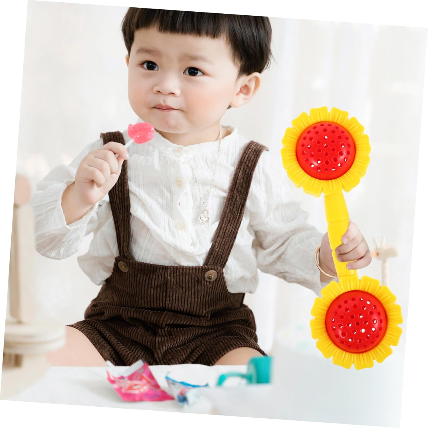 Ideale per gli allenamenti dei bambini: questi sonagli con manubri a forma di girasole sono l'aggiunta ideale alle routine di esercizi dei bambini, rendendole più divertenti Design accattivante del girasole: l'affascinante design del girasole cattura l'immaginazione dei bambini e li incoraggia a partecipare alle attività fisiche Sonaglio a mano coinvolgente: la funzione sonaglio a mano aggiunge un elemento giocoso, rendendo le sessioni di allenamento più divertenti e coinvolgenti per i bambini Sonaglio che ispira: la funzione del campanello ispira i bambini a muoversi e rimanere attivi, promuovendo stile di vita sano fin dalla giovane età Leggero e portatile: adatto ai bambini da portare con sé, fare esercizio e giocare sempre e ovunque