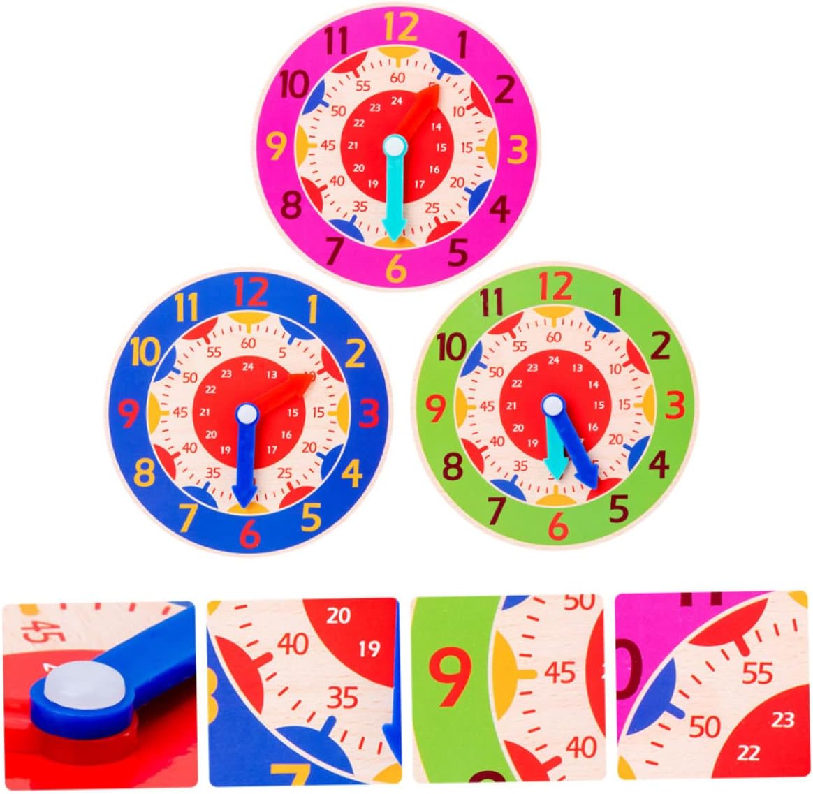 Orologi in legno: il giocattolo educativo è utile per insegnare ai bambini l'immaginazione e i concetti matematici. Giocattolo: realizzato in legno e materiale plastico di qualità, è rispettoso dell'ambiente e sicuro per i bambini che giocano. Giocattoli per ragazze: un fantastico giocattolo per far interagire i bambini con i loro genitori, mamma e papà possono insegnare al bambino a riconoscere il tempo, coltivare il concetto di tempo e promuovere la formazione del concetto di tempo digitale. Set da gioco in legno: numeri e design dell'orologio per sviluppare il pensiero e l'immaginazione del tempo e dei numeri. Giocattolo didattico per l'orologio dei cartoni animati: i sussidi didattici comunemente usati nelle scuole materne possono stimolare il divertimento dei bambini nella comprensione del tempo.