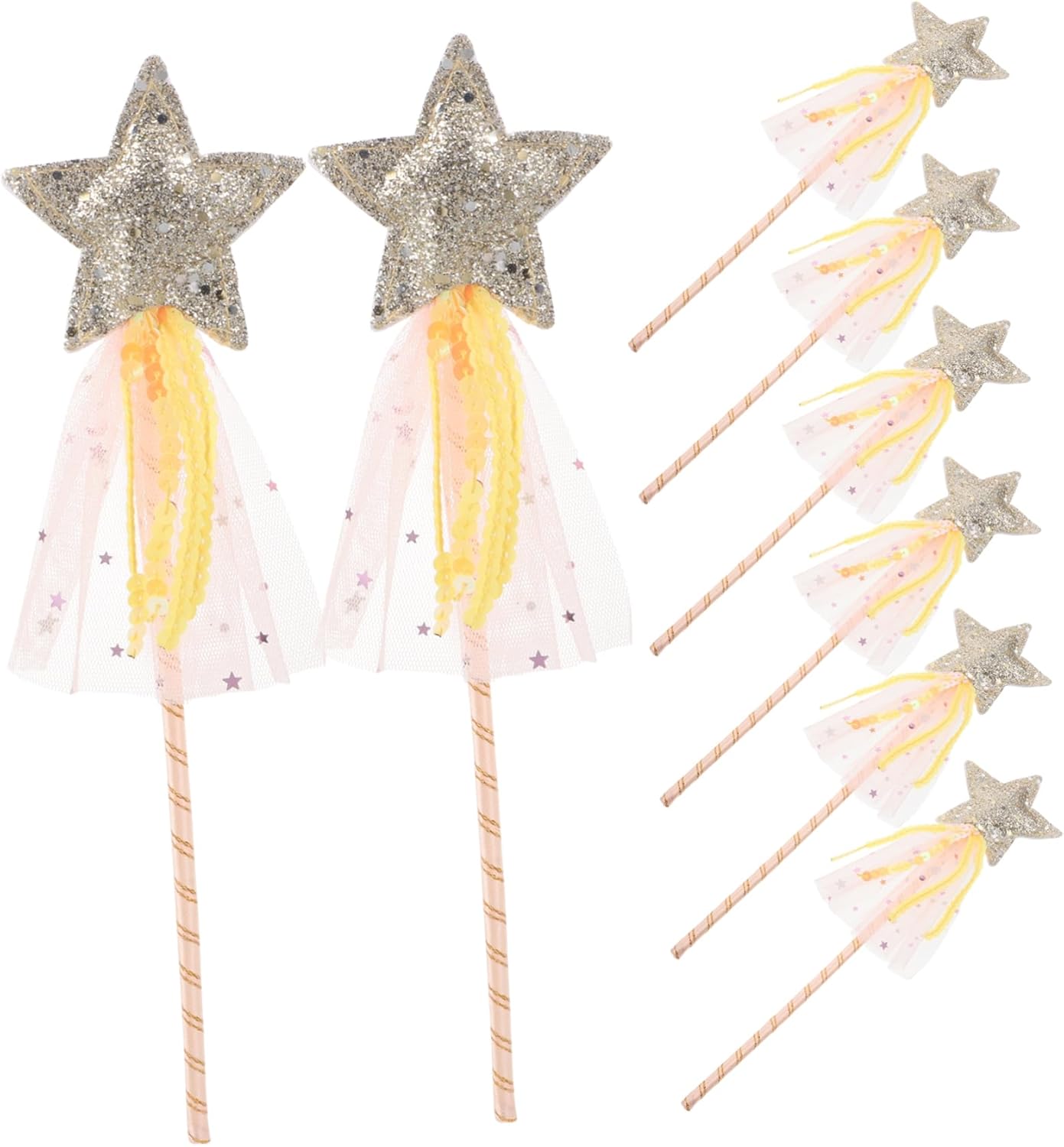 Sicuro da usare: tagliato alla perfezione con superfici pulite e bordi lisci, non ti danneggerà da usare con molta più sicurezza, bastoncini delle fate, bacchette delle fate creative Portatile: leggero e di lunghezza adeguata, facile da portare nei luoghi di cui hai bisogno, senza spendere troppi sforzi, bastoncini di fata cosplay, bastoncini di fata oggetti di scena Materiale plastico: lavorazione, materiali sicuri e plastici, semplici e generosi, supportano il tuo utilizzo a lungo termine, accessorio per costumi, fornitura per feste Ampia applicazione: ampiamente utilizzato per feste in maschera, compleanni, spettacoli teatrali, cosplay e altro ancora, per , bastoncini da fata per feste Realizzati con materiali plastici sicuri, senza sbavature, sicuri per le , possono durare molto più a lungo, bacchette a forma di stella, bacchette a forma di stella per feste