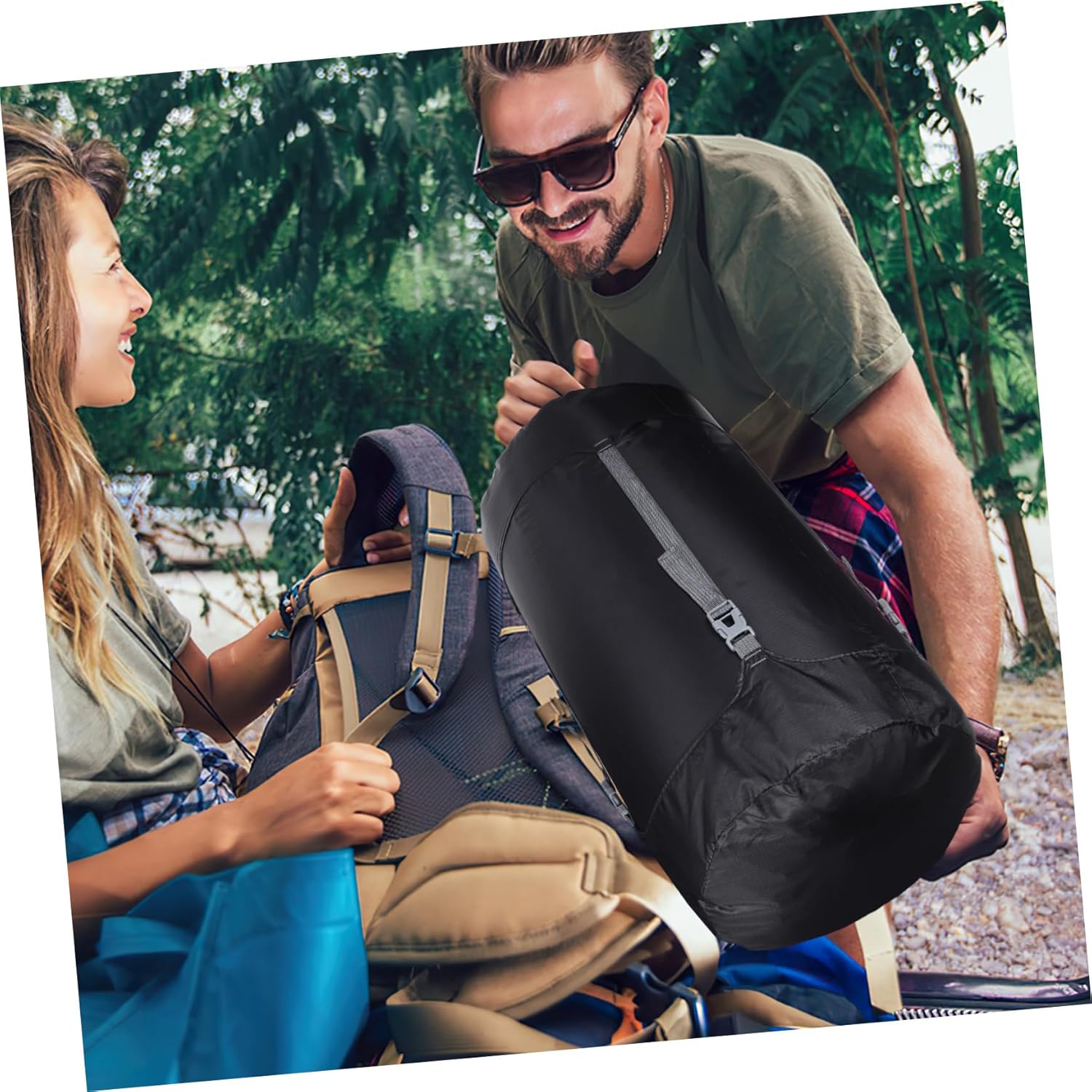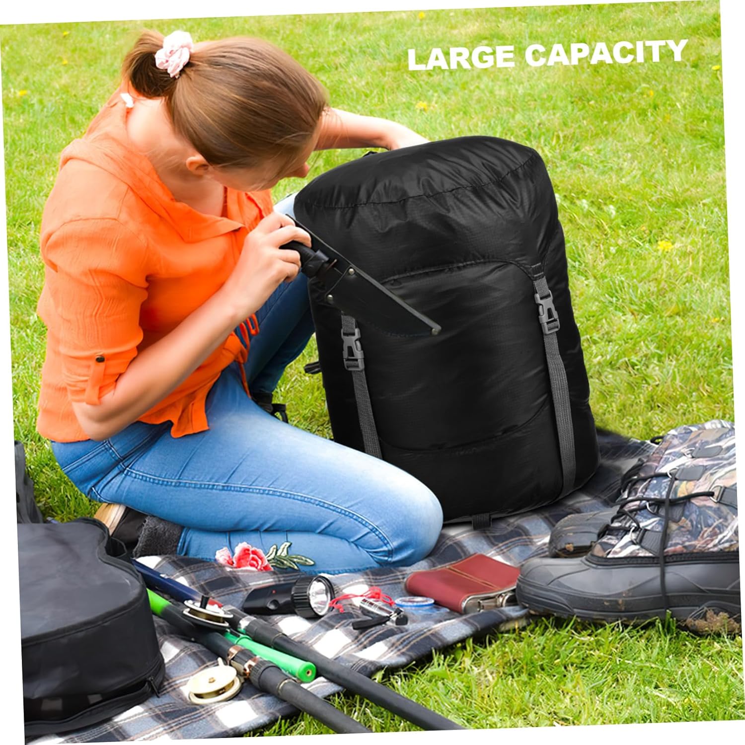 Sacco a compressione: questo sacco a compressione può comprimere i sacchi a pelo per risparmiare spazio, rendendolo ideale per attività all'aperto e viaggi, sacco da viaggio, sacchi a compressione con coulisse Comodo da usare: il design con coulisse facilita l'apertura e la chiusura della borsa, mentre la fibbia regolabile consente di regolare la borsa, sacco portaoggetti per sacco a pelo, sacco da viaggio a compressione Fibbia regolabile: la fibbia liscia e facile da usare può essere regolata per adattarsi alle tue esigenze, consentendoti di allungare o stringere la borsa secondo necessità, sacco da campeggio, borsa per vestiti da campeggio Chiusura con coulisse: la chiusura con coulisse facilita il serraggio del sacco a pelo e impedisce che gli oggetti cadano o si perdano, piccolo sacco a pelo con coulisse, sacco a pelo Capacità: il design extra-large di questa borsa a compressione consente di contenere molti oggetti, rendendola adatta per riporre vestiti, coperte e altro, piccola borsa a compressione, borse a compressione per zaino in spalla