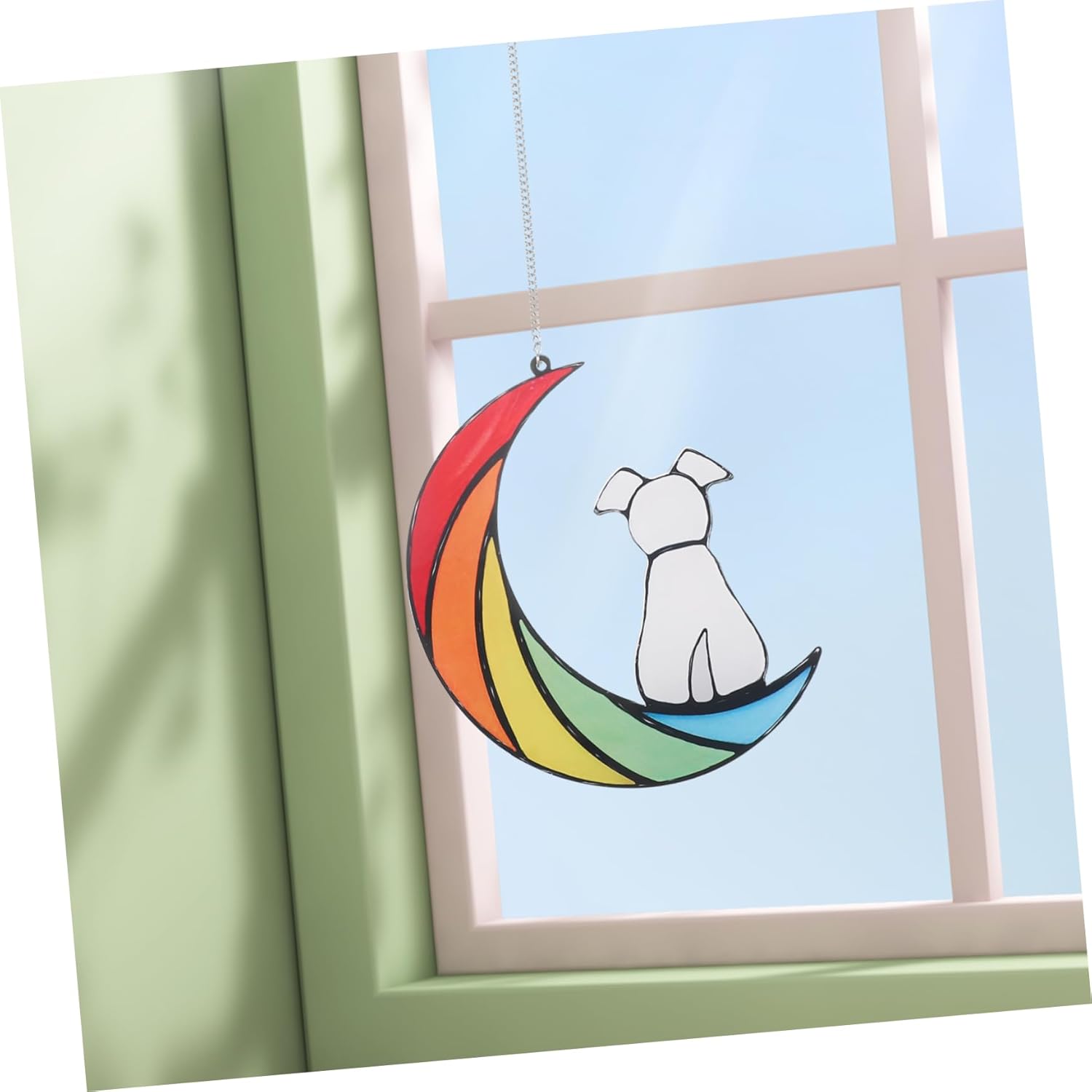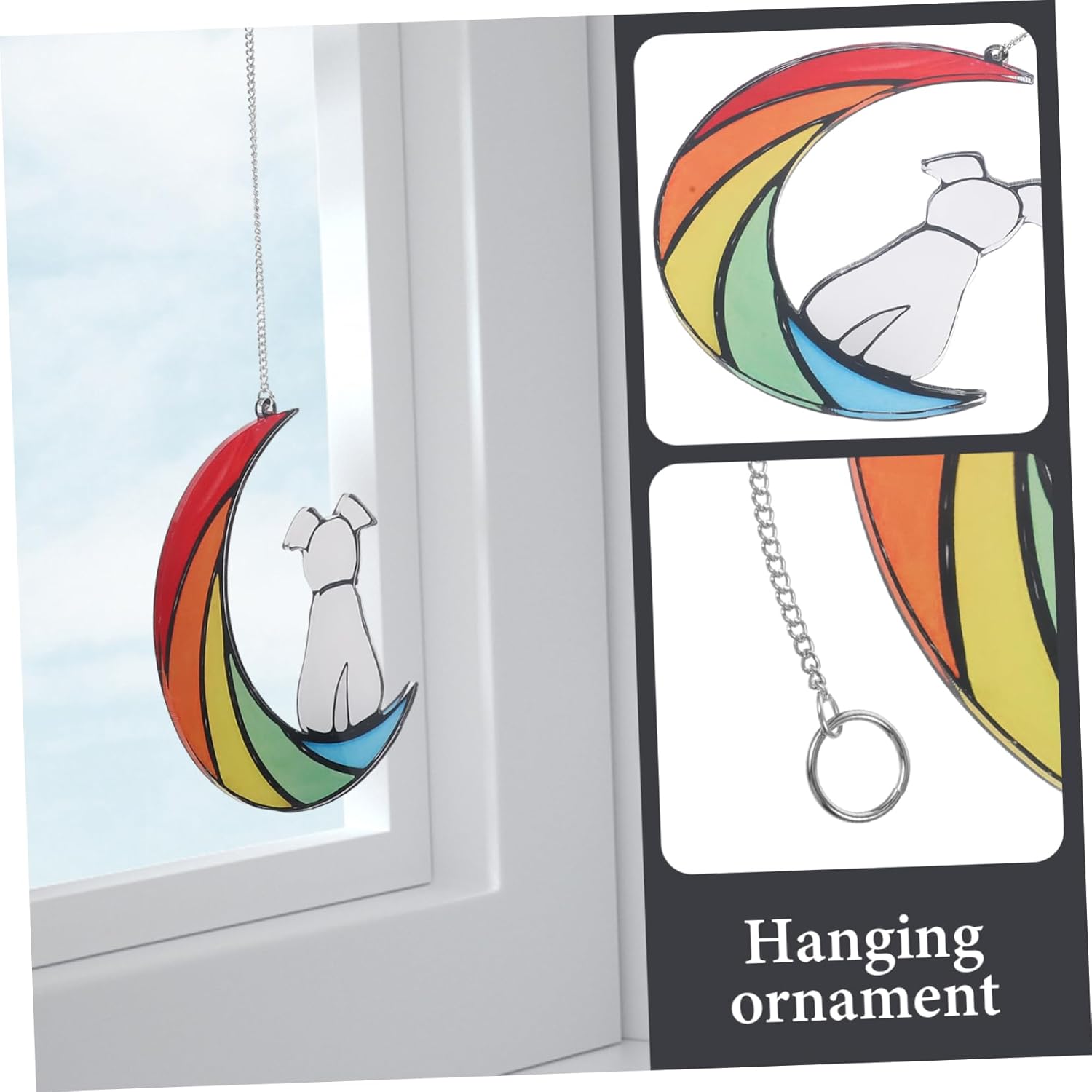 Acchiappasole colorato da appendere alla finestra: con una catena per appenderlo, l'acchiappasole da finestra può essere facilmente appeso a una finestra o a un muro. darti più comodità di installazione. Finestra da appendere a forma di : l'acchiappasole per finestra colorata è adatto per la decorazione di case, bar, giardini, ristoranti e altri luoghi. Acchiappasole lunare in acrilico colorato: con struttura in acrilico colorato, il pannello della finestra cattura la luce solare colorata e illumina la tua casa con colori caldi, luminosi e belli. Decorazione murale: la forma squisita e realistica della con colori brillanti lo rende perfetto per decorare la tua casa. Acchiappasole: pregevole fattura, effetto decorativo colorato, adatto a una varietà di decorazioni di scene.
