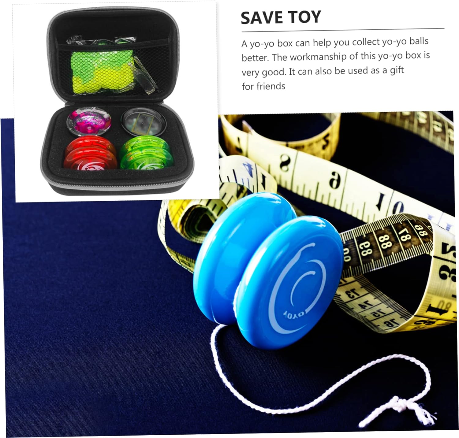 Custodia per giocattoli yoyo: il design del prodotto è , pratico, comodo da trasportare, sicuro e comodo da usare. Custodia portatile per giocattoli yoyo: mantieni il tuo yoyo ben organizzato, sicuro e facile da trovare. leggero, puoi portarlo ovunque. Borsa portaoggetti per giocattoli yoyo: la custodia può essere regalata ai tuoi amici, il che li rende felici. Custodia per giocattoli yoyo: adatta per riporre yoyo, è leggera e più comoda da trasportare. Custodia yoyo per riporre: la custodia ha pregevole fattura, aspetto raffinato, design semplice, comoda e pratica per riporre yoyo.