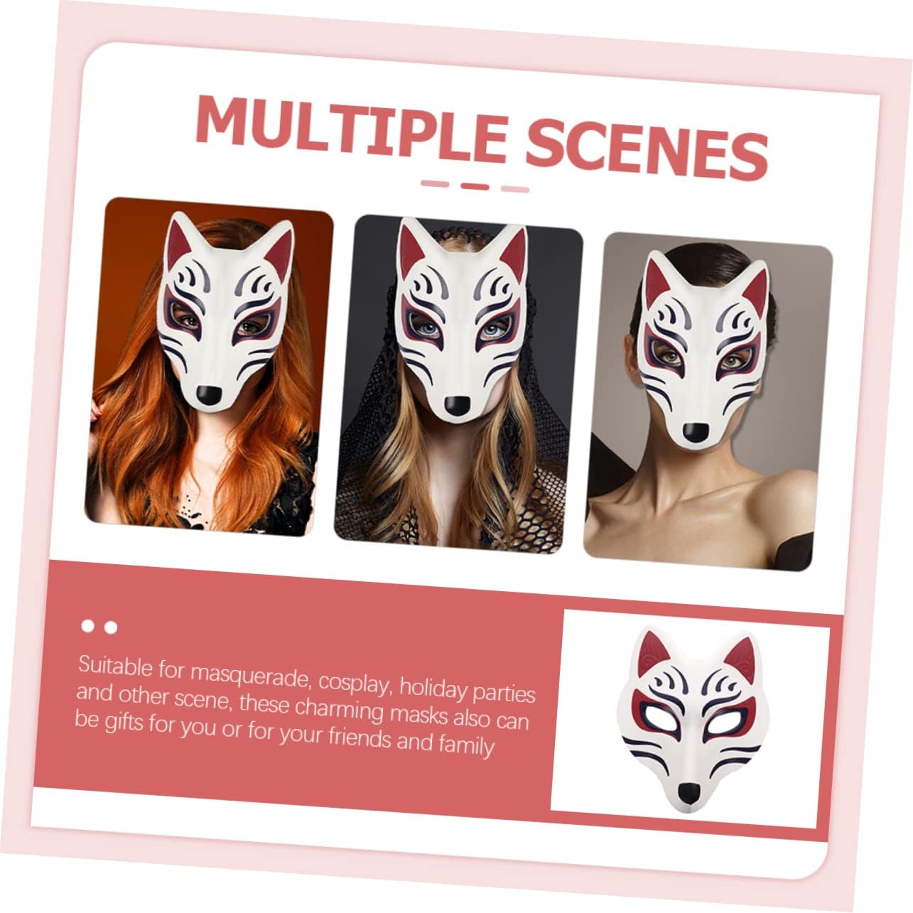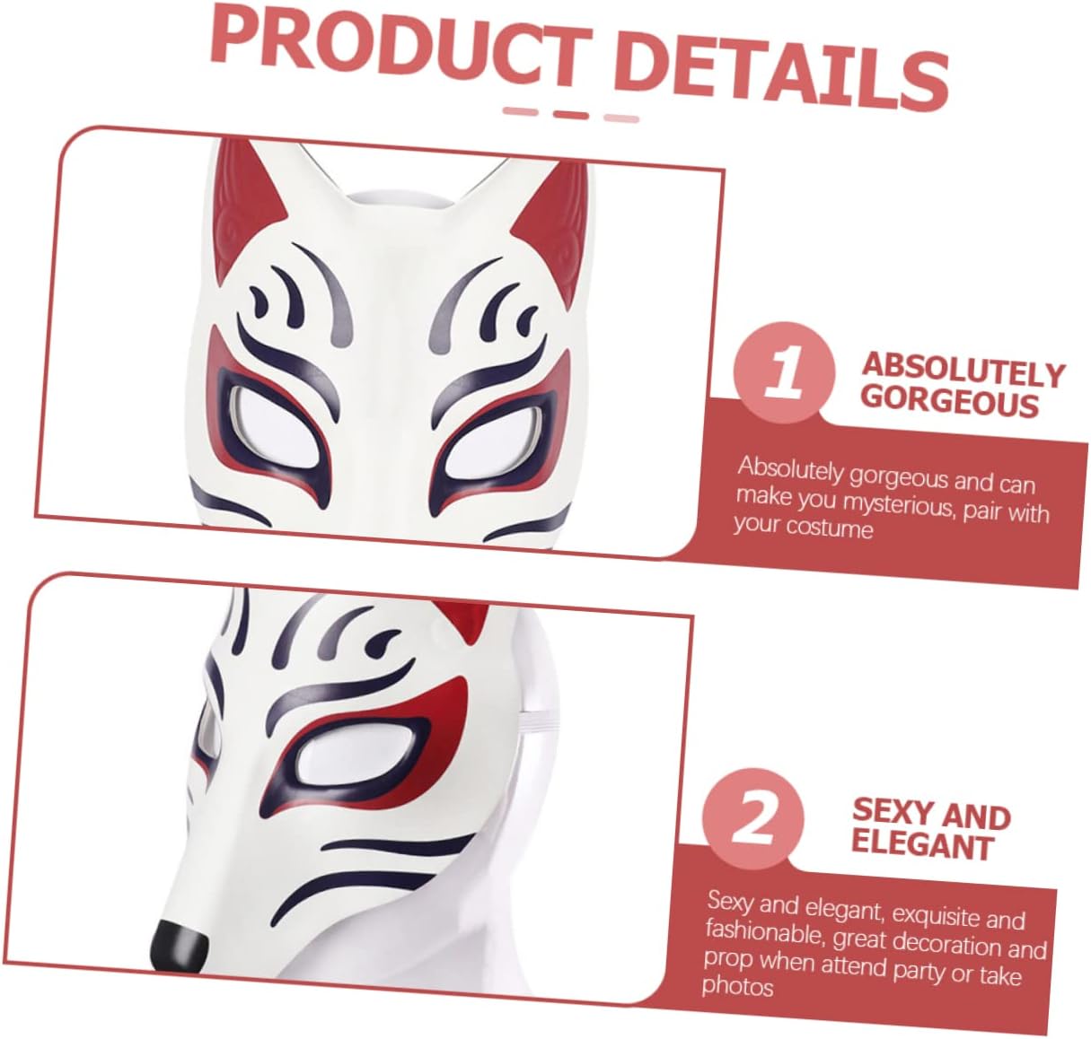 elenco dei pacchetti 1 x caratteristiche della maschera - materiale: eva halloween per adulti maschera per travestimento per uomini maschera per travestimento da donna halloween mezzo cosplay halloween per donne halloween per halloween cosplay tappetino di halloween decorazioni per feste festa - dimensioni: 27.00x24.00x5.00cm/10.61x9.43x1.97 in maschera vuota. - colore: maschera fatta a mano - misteriosa e piena di eleganza, stile, design affascinante, sarà una maschera da festa attraente e unica. - si adatterà a vari outfit, resterà al passo con le tendenze. sicuramente un costume, il cosplay complimenta il vincitore durante le decorazioni della festa sul tappeto rosso. - La maschera in maschera è un must per la festa di Halloween, feste di moda, cosplay, ecc., maschera vuota dipinta a mano. - farti sembrare fantastico alla festa, accessorio per feste per incontrare fantastici ragazzi con maschere kitsune. - può essere piegato delicatamente per adattarsi alla tua pelle, comodo da indossare e adattarsi alla tua pelle. descrizione Le maschere kitsune sono molto comode intorno agli occhi e non troppo piccole, quindi non schiacciano la tua metà di Halloween, si adattano alla maggior parte delle forme. questa maschera è molto leggera da indossare, realizzata in materiale di alta qualità, molto alla moda e lussuosa, piena di stile e design