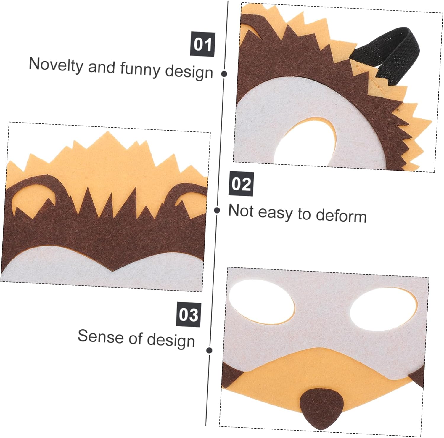 Elenco dei pacchetti 1 x maschera (riccio) Caratteristiche - Dimensioni: 17,20x16,00x0,40 cm/6,76x6,29x0 animale divertente. - colore: maschera pasquale marrone - materiale: maschera cosplay in tessuto non tessuto - il design creativo e leggero ti farà sembrare più elegante e affascinante sulla maschera per la festa. - La maschera ha un elastico che si adatta bene alla tua taglia, adatto alla maggior parte delle persone, adatto sia a uomini che a donne. - La maschera è realizzata in tessuto non tessuto, comoda e pratica per utilizzare a lungo una delicata maschera da festa. - Questa maschera cosplay è anche per te per prendere parte a feste cosplay e feste da ballo, maschera di animali in maschera molto decorativa. - Questa maschera animale dall'aspetto divertente ti fa distinguere dalla massa, usala per il cosplay. Descrizione di articoli per animali per festival delicati di casting di animali, adatti per Halloween, feste in maschera, feste in maschera e altro ancora. simpatica maschera per animali, la nostra maschera è applicabile in varie occasioni. maschera animale la maschera unica può renderti eccezionale per le persone e lasciare un ricordo impressionante