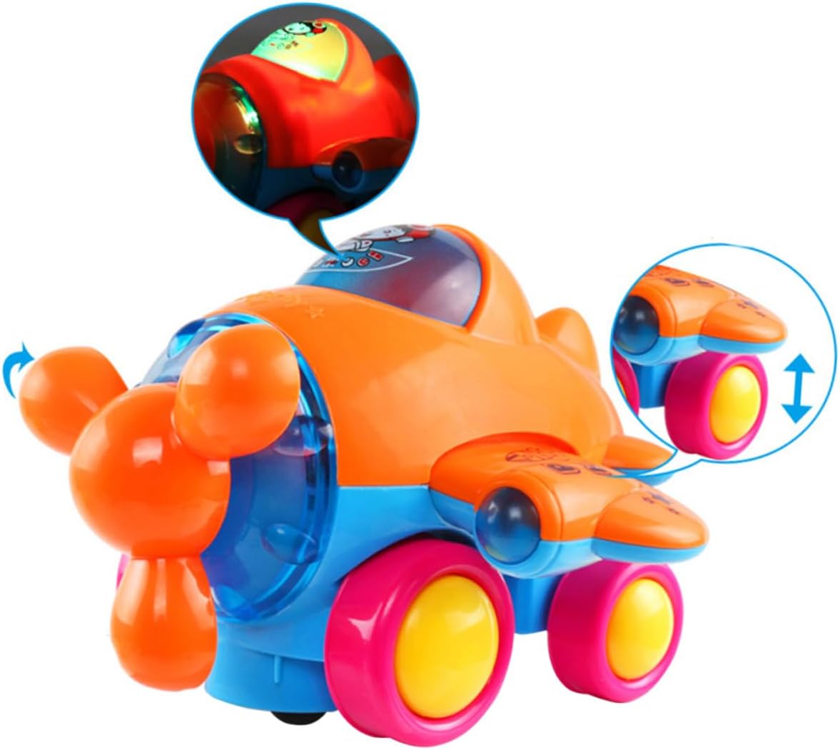 Giocattoli aerei per bambini: il miglior regalo per i bambini. Giocattolo: diverso tradizionali giocattoli aerei, è più interessante per i bambini giocare tutto il tempo. Giocattoli per aerei: dotato di ruote universali, non solo può eludere automaticamente gli ostacoli ma anche girarsi. Giocattoli: con il design dei cartoni animati, può aiutare i bambini a sviluppare il potenziale e diventare più fantasiosi e creativi. Aeroplani giocattolo per ragazzi: quando apre, l'elica ruoterà, le sbatteranno su e giù e accenderà una luce colorata.