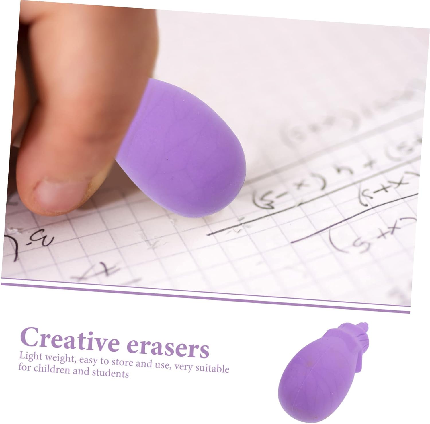 Gomma kawaii: le nostre gomme sono adatte per premi in classe, natale, riempitivi per calze, feste scolastiche o di compleanno, gomme per bambini Gomme divertenti: facili da sbavare e lasciare, mantenendo i libri e la carta di prova puliti e ordinati, piccoli premi per i bambini Gomme da cancellare per la classe: queste gomme da cancellare sono adorabili e possono attrarre molto i bambini, facendoli amare la scrittura e il disegno, premi in classe Gomme da cancellare grandi: questa gomma può cancellare efficacemente la calligrafia che hai scritto con una matita, gomme da cancellare per alimenti per bambini Gomme da cancellare per il cibo: puoi regalarle a scuola i tuoi bambini piccoli, dare loro una piccola sorpresa, gomme da cancellare creative