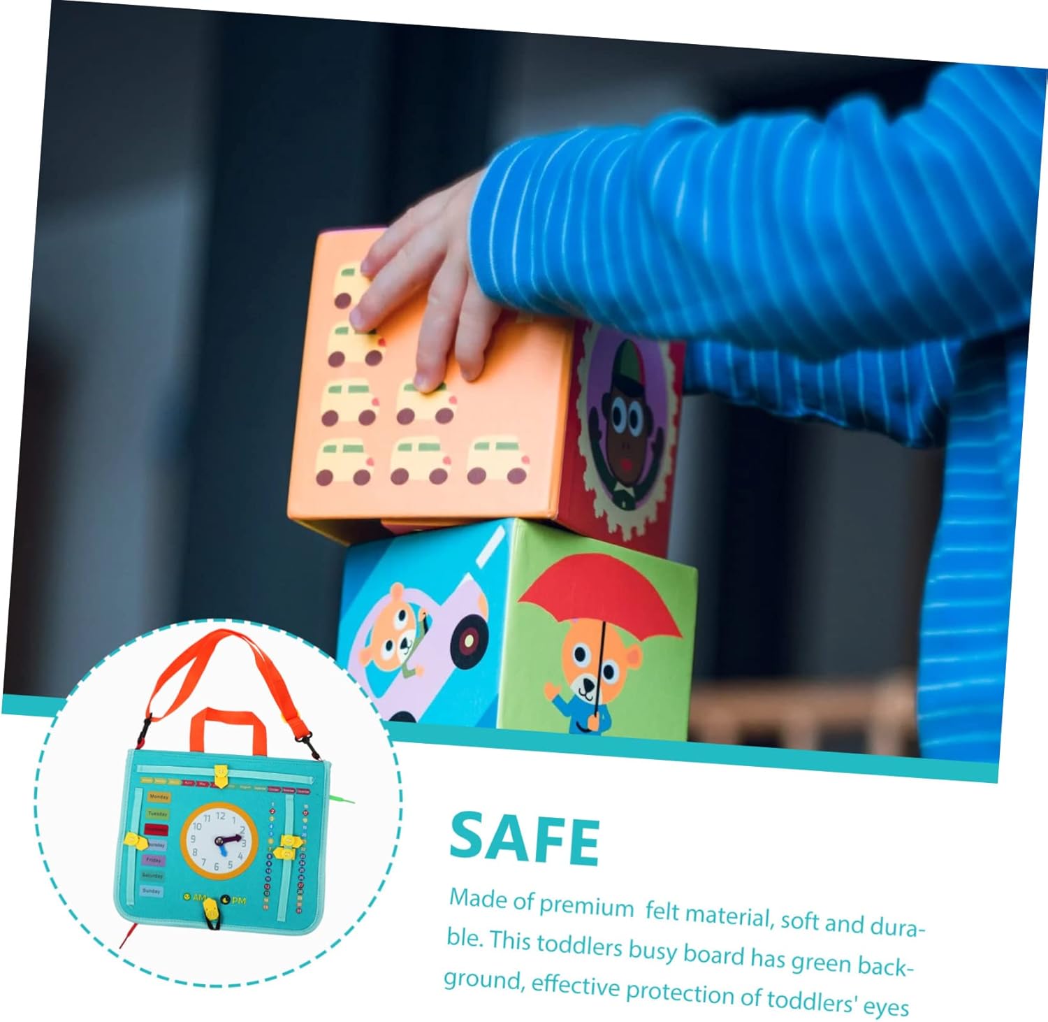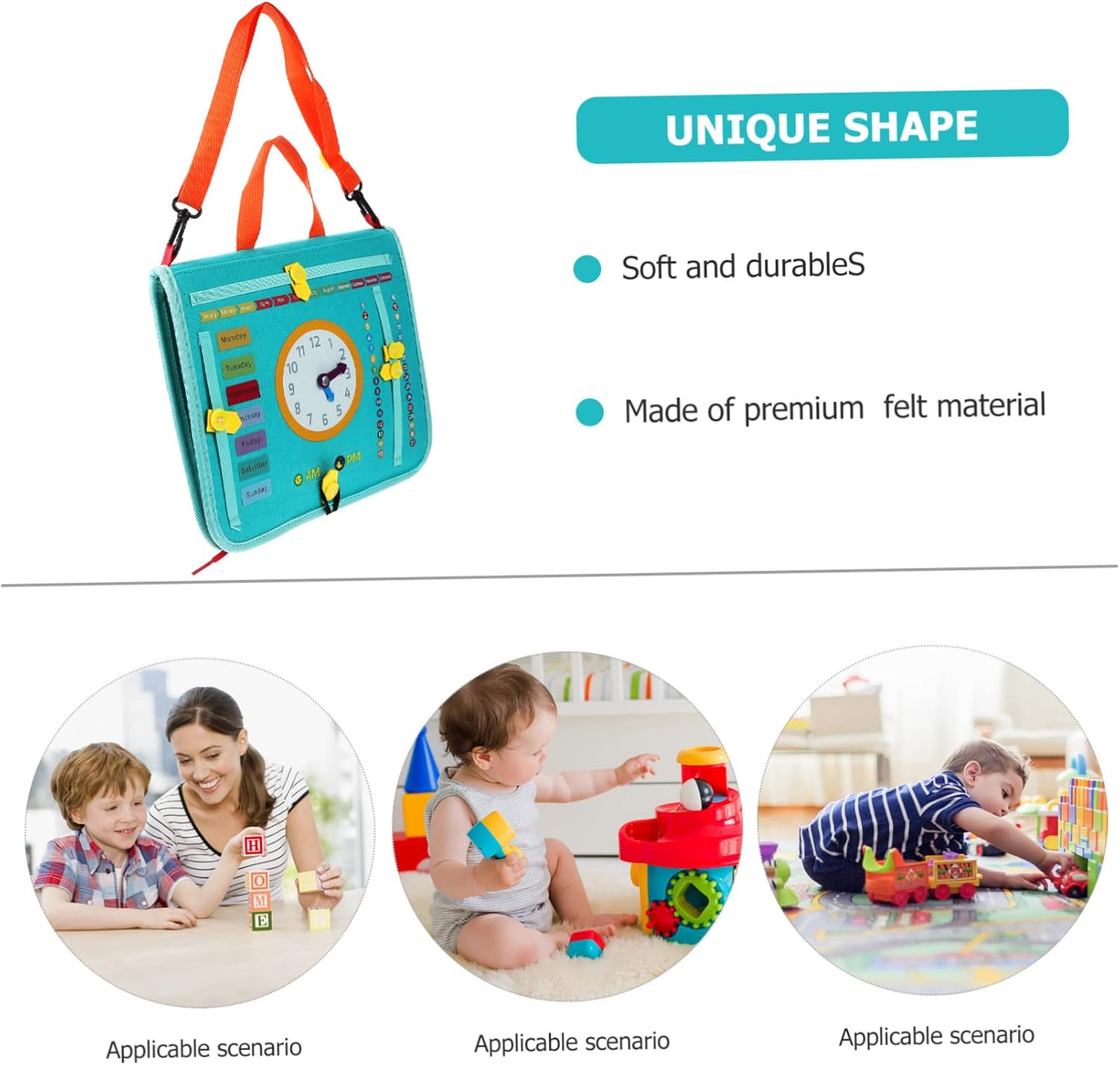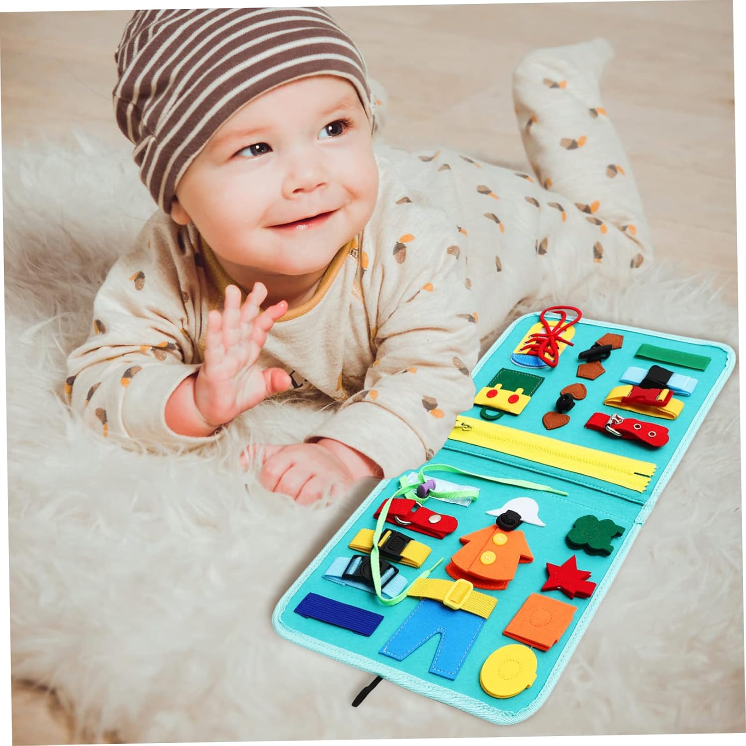 Giocattoli educativi per neonati: attraverso questo set di giocattoli, i tuoi bambini scopriranno quanto sia interessante vestirsi, una tavola di attività Montessori per i più piccoli Tavola occupata: con il design accurato del modello dell'orologio, i genitori possono usarlo per insegnare ai bambini come leggere l'ora. Lavagna attività per bambini Montessori Lavagna attività per bambini: il prodotto favorisce l'apprendimento, la capacità di vestirsi, le capacità cognitive e di risoluzione dei problemi, nonché lo sviluppo delle capacità motorie. Tavole attività montessori per bambini piccoli Attività per: ti consente di imparare e praticare importanti abilità di vestizione mentre sei da solo, rendere più facile per i bambini vestirsi, tavola attività montessori Sensoriale per: le parti sono piccole e facili da maneggiare per le mani piccole, il che può attirare l'attenzione dei bambini. pannello di attività in feltro