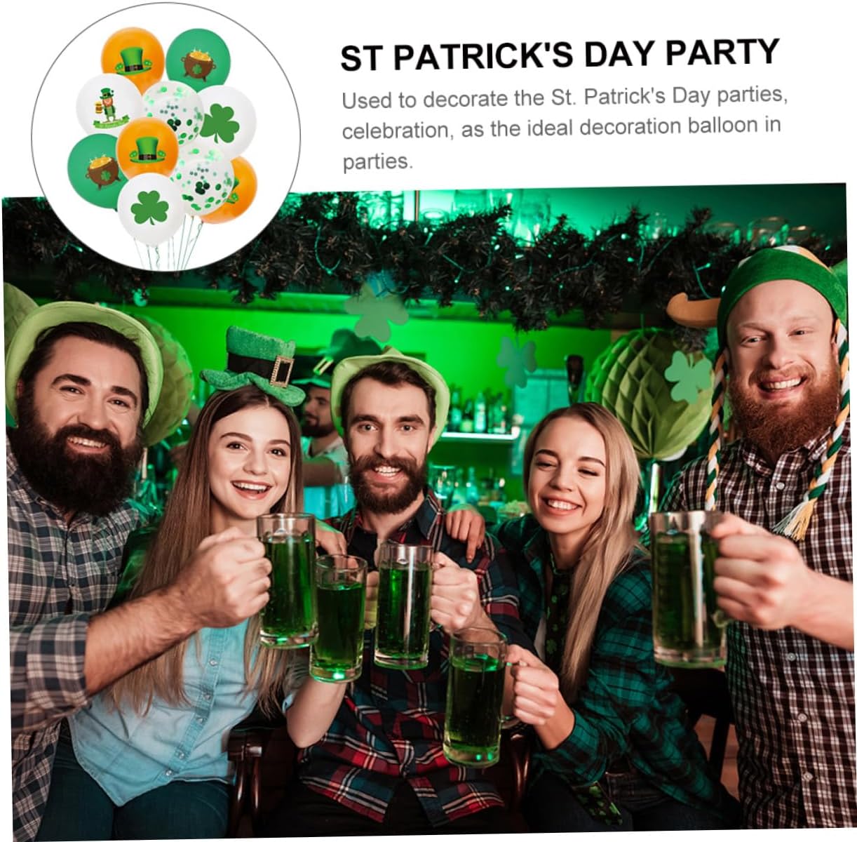 Palloncini decorativi per il di san patrizio: questi palloncini sono un'ottima aggiunta per le tue feste di san patrizio, tutti i tuoi ospiti rimarranno colpiti tuoi palloncini in lattice per il di san patrizio, disposti con cura Palloncini in lattice per festival: design raffinato, fortuna, possono rendere la tua festa di san patrizio più vivida, delicati palloncini con paillettes Palloncini in lattice per decorazioni: usati per decorare le feste di san patrizio, le celebrazioni, come palloncini decorativi nelle feste, oggetti di scena per il di san patrizio Decorazione per festival: ottima idea per rallegrare la festa, da portare alla famiglia o agli ospiti, stampa palloncini per feste Decorazione per la casa: applicabile per la decorazione del di san patrizio, può essere appesa a pareti, porte, finestre, ecc. forniture