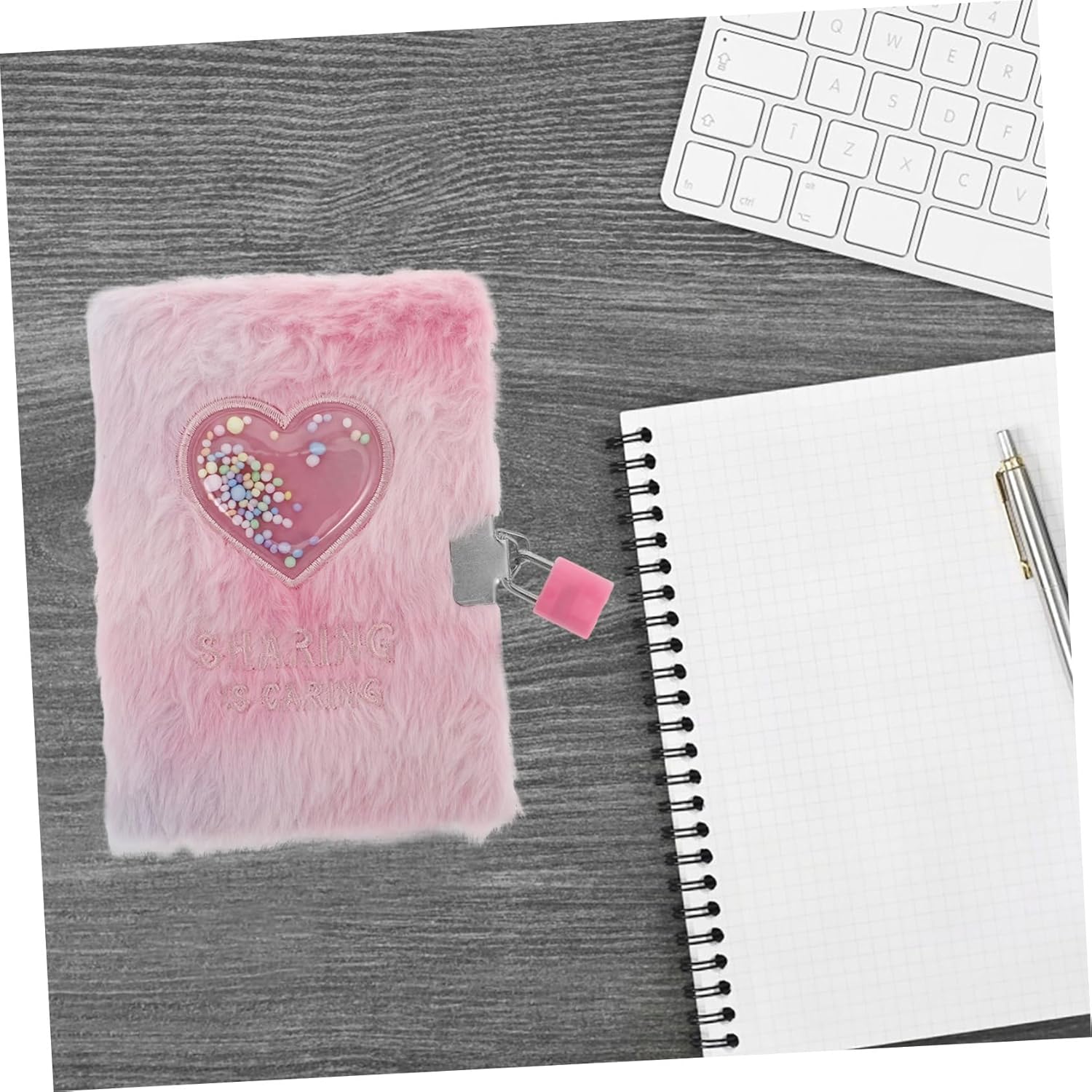 Simpatico e peloso: l'esterno in peluche con un design da cartone animato non è solo adorabile ma anche morbido tatto, rendendolo un piacere da usare per scrivere e disegnare Facile da trasportare: il suo formato compatto A6 garantisce che adatti facilmente a zaini e borsette, rendendo comodo per gli studenti trasportarlo ovunque Blocco sicuro: il blocco integrato fornisce un ulteriore livello di sicurezza, garantendo che i contenuti del diario rimangano privati e da occhi indiscreti Multiuso: questo taccuino è adatto a una varietà di usi, tra cui come aiuto per lo , un diario personale o un premio speciale per i risultati degli studenti Design : il bellissimo motivo a cuore aggiunge un elemento e romantico, rendendolo una scelta adatta per le ragazze che apprezzano i design affascinanti