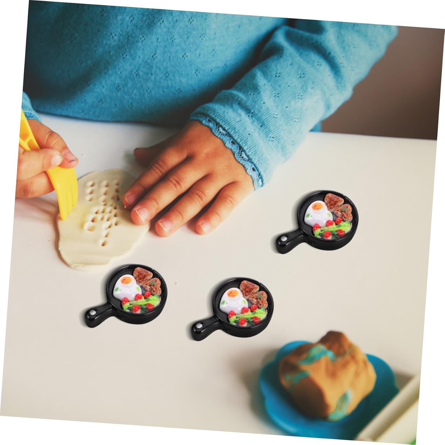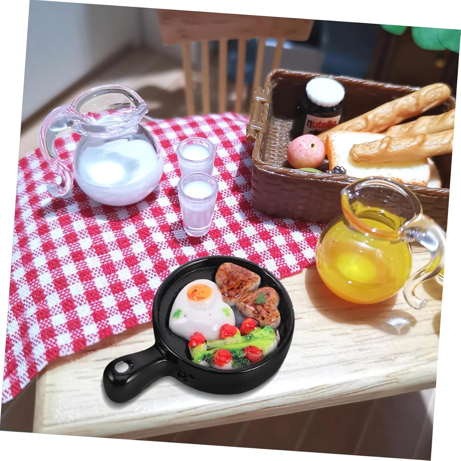 Design unico: distingue per il suo design distintivo, aggiungendo personalità al tempo di gioco, fritto realistico, cibo finto realistico Costruire scene di case delle bambole stimola la creatività e l'immaginazione in, padella da cucina, oggetti in miniatura Dettagli realistici: il set realistico di cibo finto e padella offre un'esperienza di cucina autentica, padella in miniatura, padella per uova in miniatura Creativo: il set per la colazione con padella da gioco realistica consente di divertirsi con la decorazione fai da te della casa delle bambole e scene in miniatura, cibo da gioco realistico, set da cucina in miniatura Stimolo alla creatività: stimola il gioco fantasioso e la creatività consentendo di creare le proprie scene di casa delle bambole, padella antiaderente, cibo in miniatura