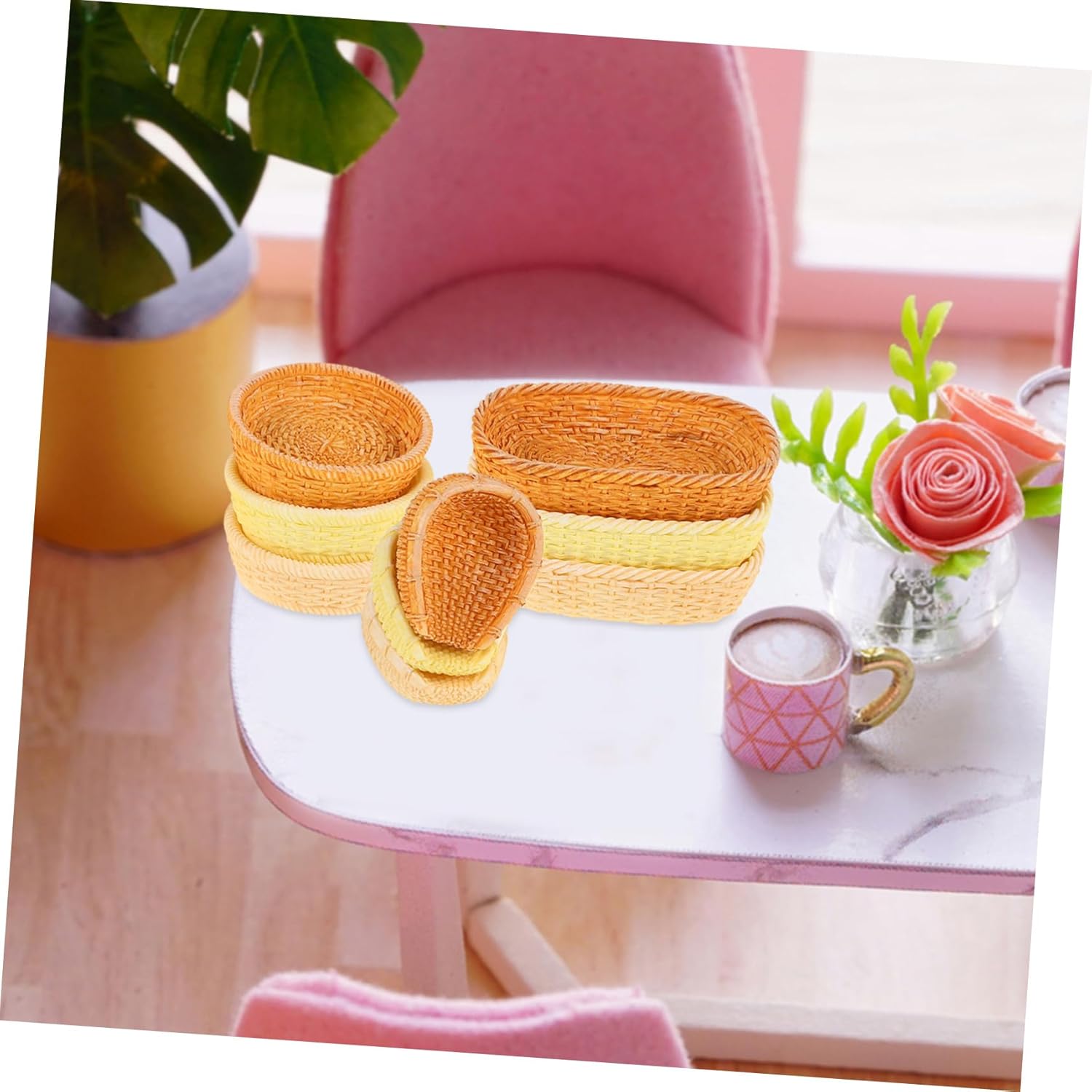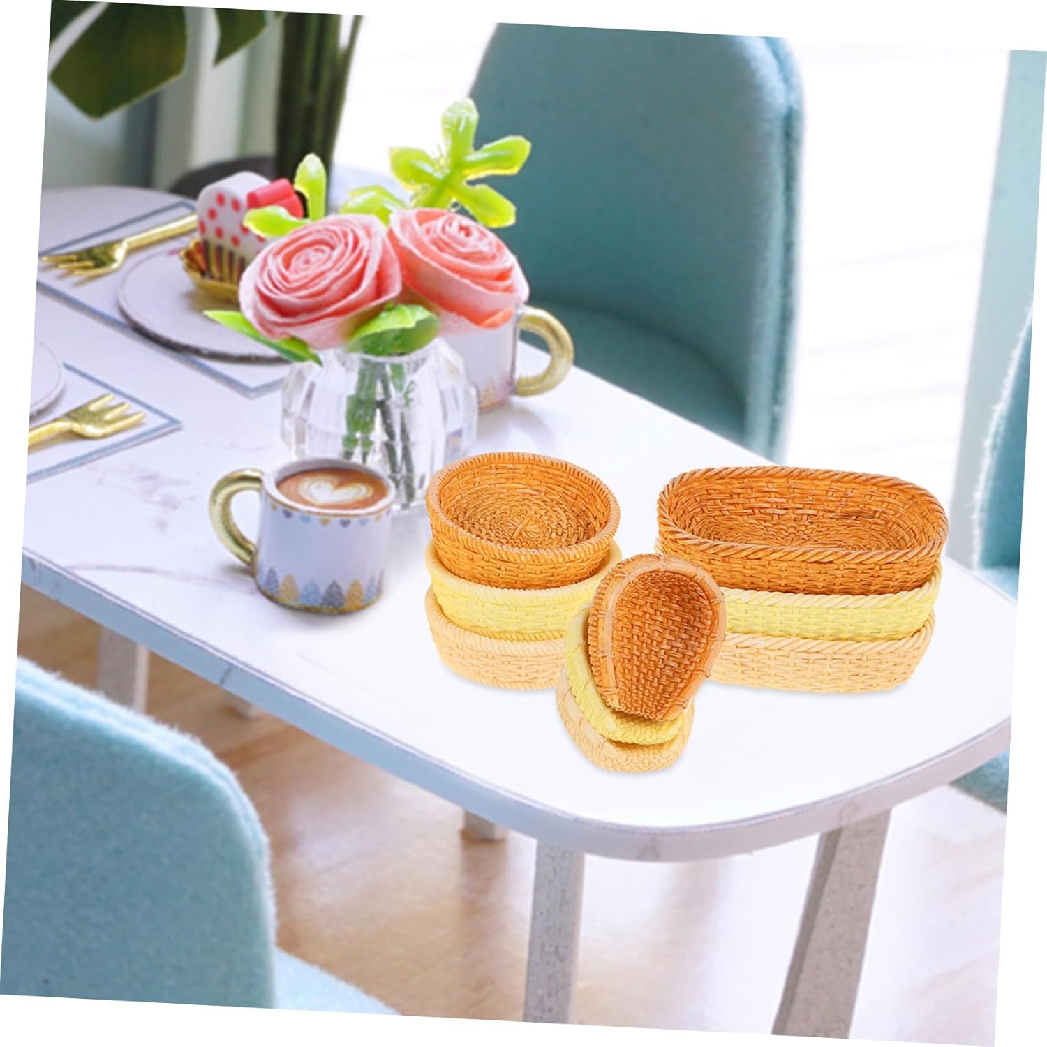 Vassoio per casa delle bambole in miniatura: diverse opzioni paesaggistiche: offrendo una di opzioni paesaggistiche, questi accessori forniscono diversi elementi per migliorare e arricchire il tuo in miniatura, cibo per casa delle bambole in miniatura Piccolo cestino per il pane: accessori fai da te per la casa delle bambole: gli accessori fai da te ti consentono di progettare e decorare il tuo micro paesaggio, rendendolo unicamente tuo, accessori da cucina in miniatura Cestini alimentari in miniatura: ricco assortimento di elementi paesaggistici: è incluso un ricco assortimento di elementi paesaggistici, che rende il tuo mondo in miniatura più vivace, realistico e accattivante, mini cestino intrecciato Accessori alimentari in miniatura-- fascino rustico: questi cestini di vimini intrecciati a mano servono per aggiungere un tocco rustico alle tue ambientazioni in miniatura, esaltandone il fascino, cestini in miniatura per la casa delle bambole Decorazione da picnic per una casa delle bambole: figurine meticolosamente realizzate: aggiungi fascino alla tua casa delle bambole o tuo diorama con le nostre figurine in miniatura meticolosamente realizzate, progettate per migliorare il tuo piccolo mondo, piccolo cestino per il pane