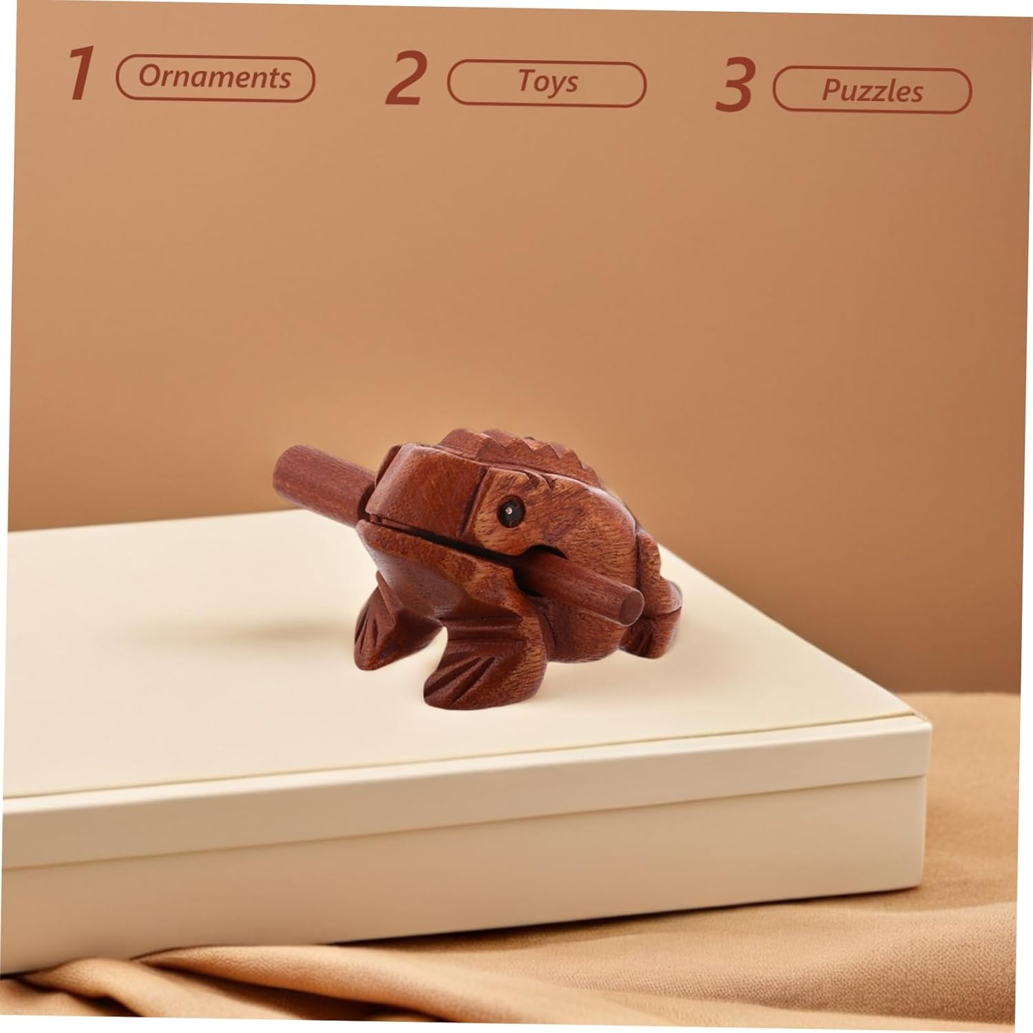 Funzione interattiva: la rana di legno può produrre un suono delizioso, rendendola un oggetto d'arredo divertente e coinvolgente, strumento musicale sonoro, cose a forma di rana Suono affascinante: la rana di legno può produrre un suono piacevole, aggiungendo un elemento interattivo e divertente all'arredamento, rana di legno, giocattolo musicale educativo Costruzione: realizzata in legno, questa decorazione a forma di rana è robusta e durevole, il che la rende una preziosa aggiunta a qualsiasi collezione, accessori per percussioni, strumento musicale in legno Design creativo: combinando una rana e un pesce di legno, questo pezzo d'arredo offre un design unico che distingue in qualsiasi , strumento musicale in legno, rana a percussione Artigianato artigianale: intagliato a mano da artigiani, ogni decorazione a forma di rana è un pezzo unico con lavorazione artigianale dettagliata, strumento a forma di rana in legno, strumento a forma di rana in legno