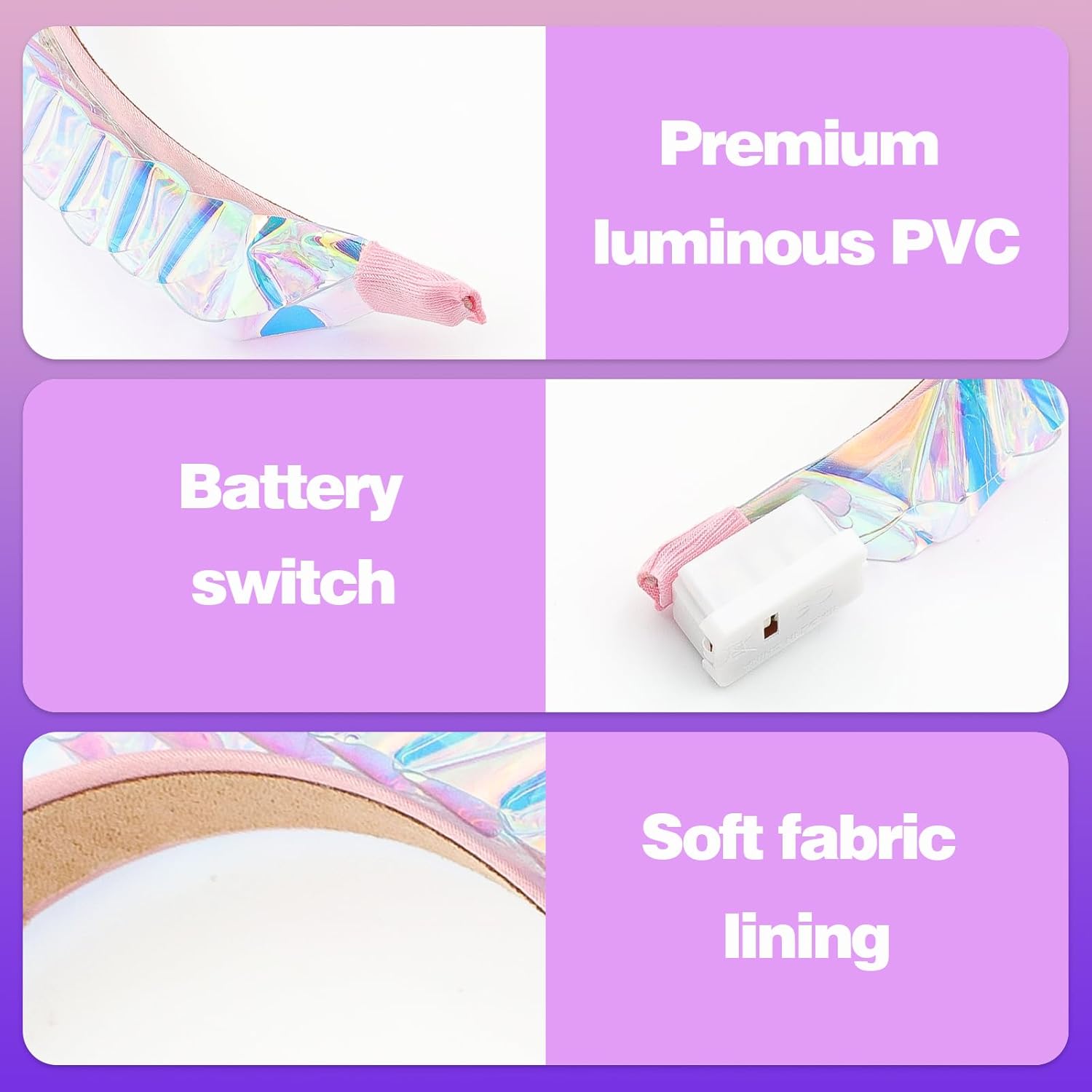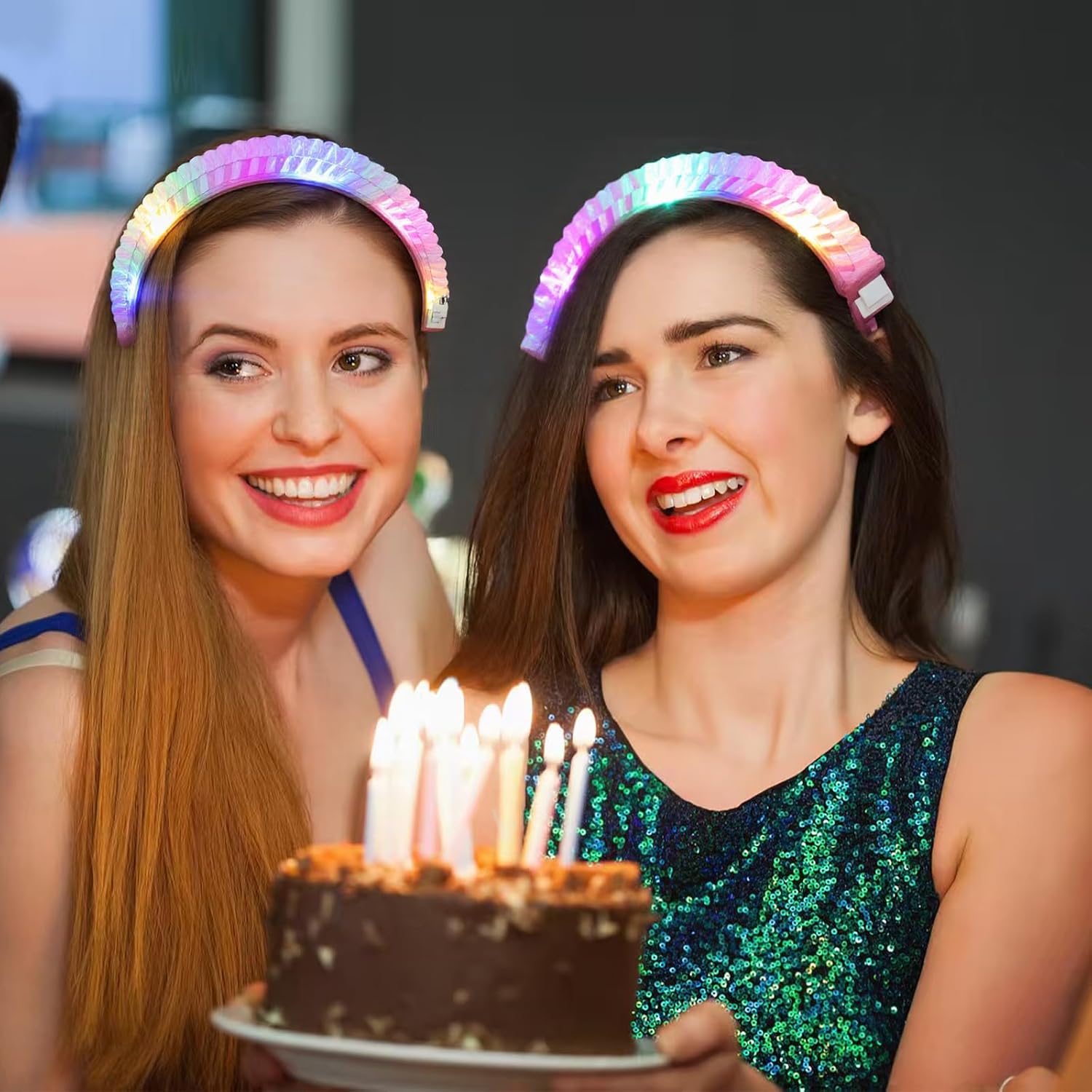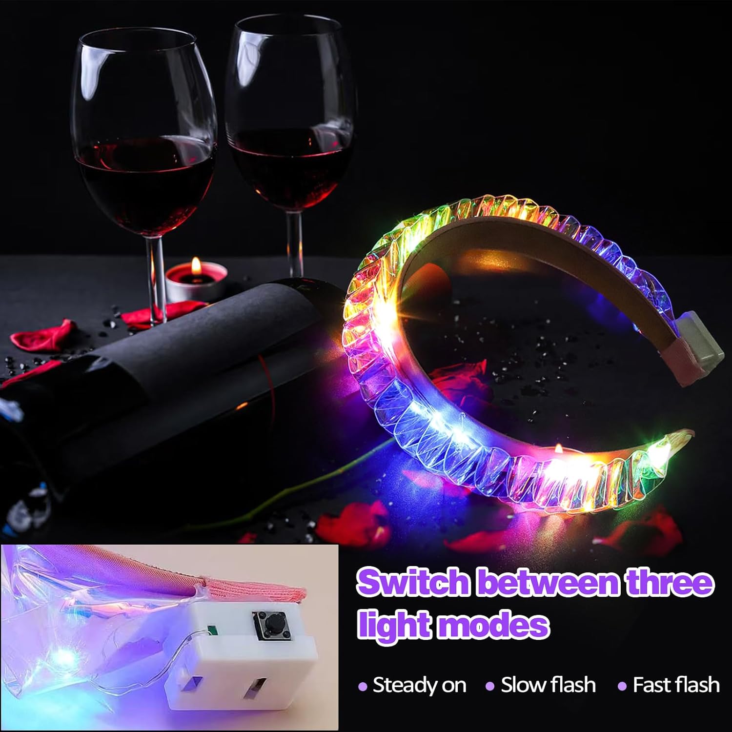 Affascinante design arcobaleno: la corona di fiori LED entusiasma con pellicola glitterata che brilla magicamente durante il movimento. Riceverai 3 pezzi di accessori per capelli, festival, perfetti per festival, costumi di Halloween, festival, concerti o servizi fotografici, lasciati ammirare nel gioco di luce dei colori Tre impressionanti modalità di lampeggiamento: questo accessorio per capelli a LED dispone di tre modalità di commutazione. Cambia a seconda dell'umore tra luce fissa, modalità lampeggiante lenta e veloce. Che si tratti di una serata tranquilla con gli amici o di una serata di festival, questo copricapo si adatta a ogni occasione e vi farà brillare Misura universale con corona di fiori a LED: elastici per capelli luminosi grazie alla struttura flessibile, il cerchietto luminoso si adatta facilmente a qualsiasi forma della testa, che si tratti di adulti, adolescenti o bambini. Ghirlanda per capelli a LED, nessuna sensazione di pressione, non scivola, corona di fiori per capelli, ideale da indossare per ore a feste, a scuola o durante le feste Pronto all'uso e portatile: il cerchietto a LED è dotato di una batteria già integrata, utilizzabile immediatamente ed estremamente leggero. Ideale per il viaggio, come accessorio per festival, da donna, per capelli luminosi, per eventi o come punto forte durante le attività all'aria aperta Regalo indimenticabile con effetto wow: questa ghirlanda di fiori a LED è perfetta come regalo per amiche, bambini, sorelle o amanti del festival. Per compleanni, Natale, Carnevale o Capodanno un'esperienza indimenticabile, piena di colore e gioia